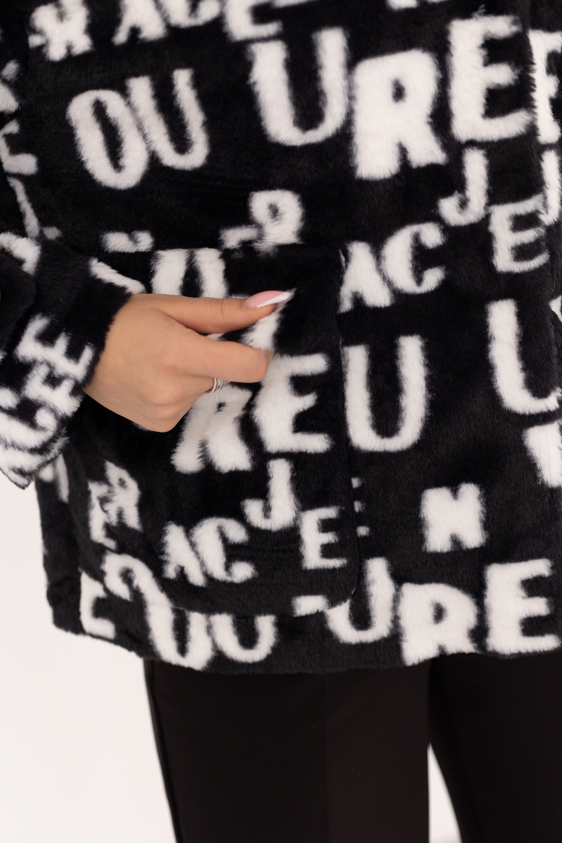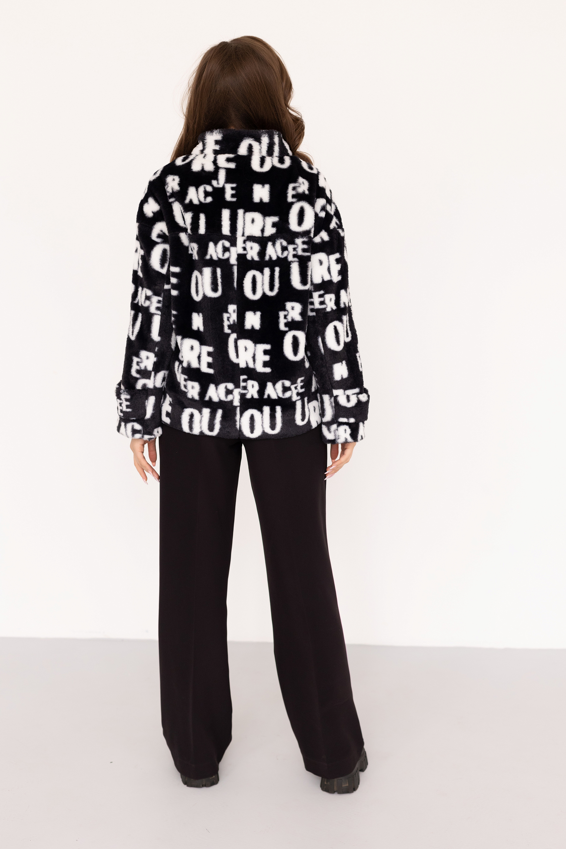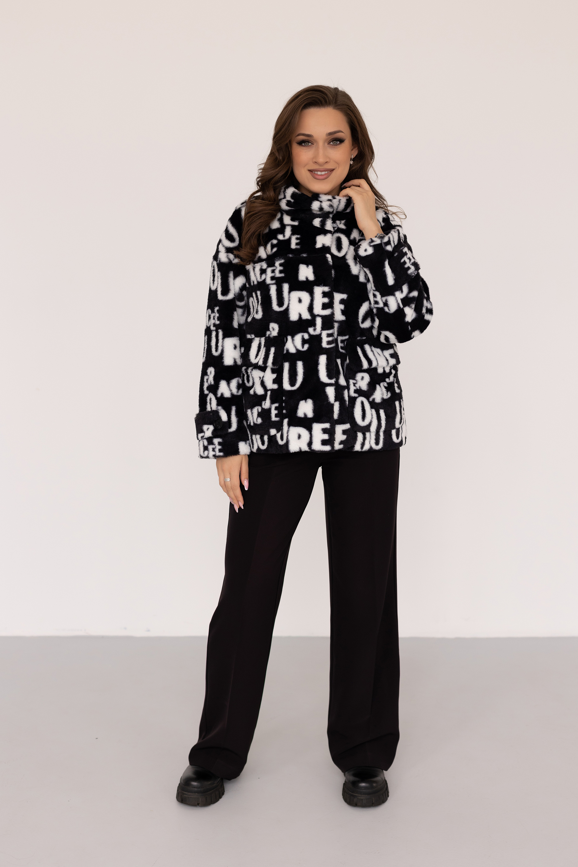 Ст.цена 4000р. Шубка женская еврозима 24350 (черно-белый/буквы)