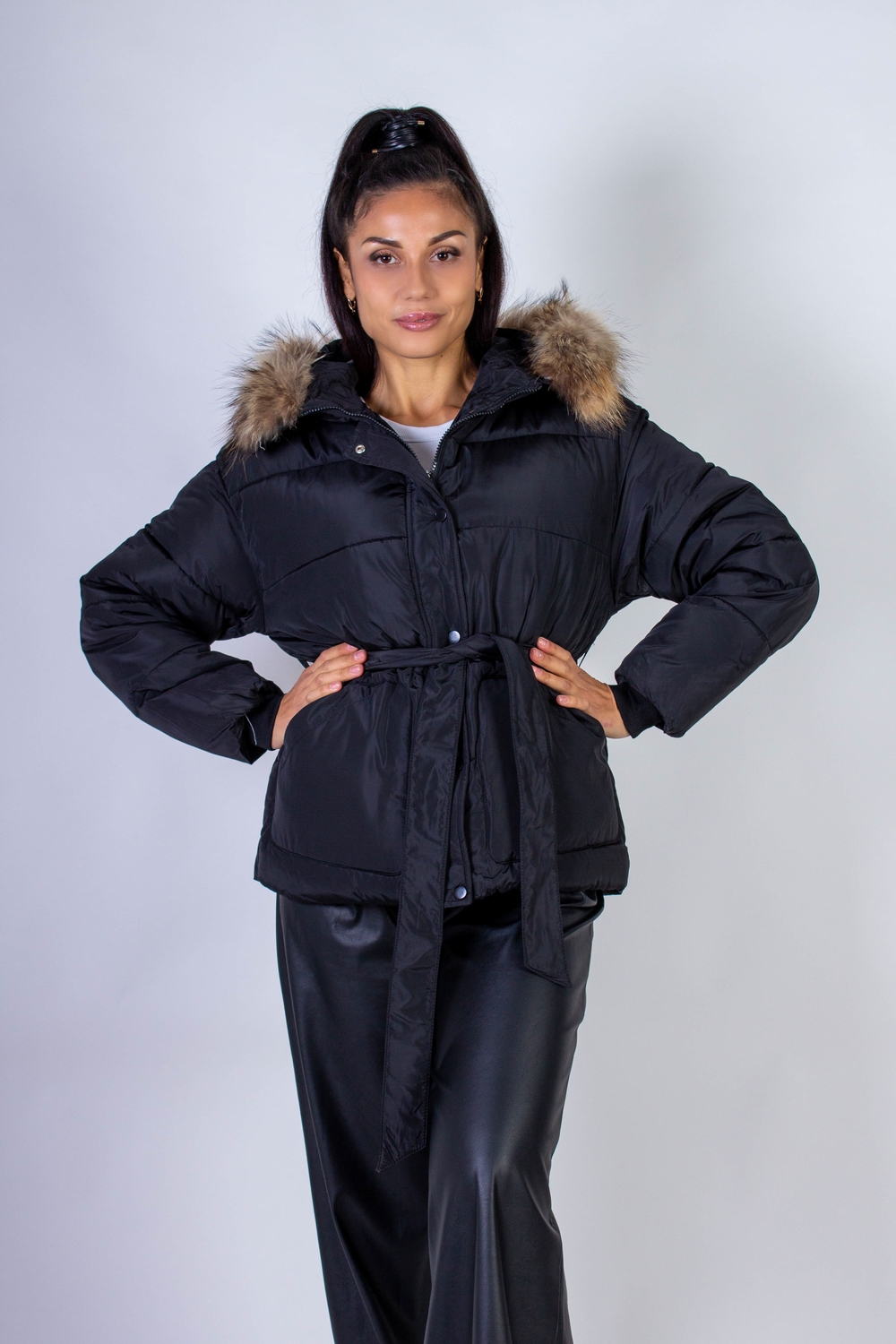 Куртка на поясе с капюшоном подойдет для демисезонного ношения или для теплой зимы. Она станет незаменимым элементом вашего гардероба в прохладное время года. Эта стильная куртка сочетает в себе элегантность и функциональность, идеально подходя как для городских прогулок, так и для школы, работы или отдыха. Куртка защищает от ветра и дождя, обеспечивая вам комфорт и теплоту в холодные дни. Внимание уделено и деталям: опушка из натурального меха может быть легко отстегнута, что позволяет вам адаптировать куртку под любые погодные условия и ваш стиль. Застежка на молнии с дополнительной планкой на кнопках обеспечивает дополнительную защиту от холода и ветра. Рукава с трикотажными манжетами предотвращают потерю тепла, а два аккуратных кармана позволят удобно хранить мелочи. Пояс, который можно регулировать по настроению и фигуре, создает актуальный силуэт песочных часов, подчеркивая ваши достоинства и добавляя уверенности в каждом шаге. Эта куртка станет отличным выбором для женщин, которые ценят комфорт и стиль. Она легко сочетается с различными элементами гардероба: будь то джинсы, юбки или платья. Вы можете легко создать как повседневный, так и более строгий образ, добавив подходящие аксессуары. Цвет: черный;бежевый;бирюзовый; Материал: курточная стеганая;курточная стеганая; Состав: 100% п/э.