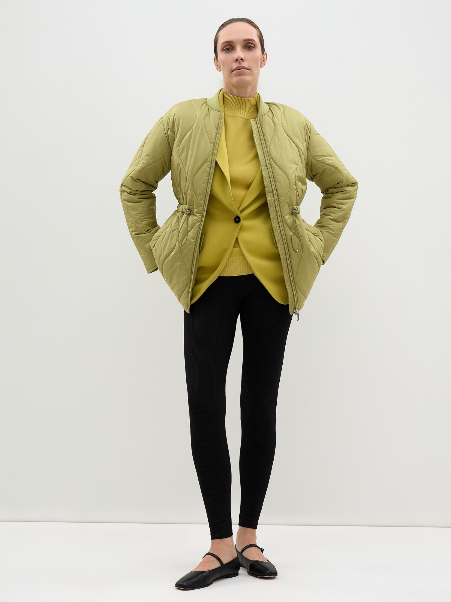 Стеганая куртка за счет воротника отсылает к спортивному бомберу, но благодаря прямому крою и рукавам без манжет поддерживает и классическую тему. Отсюда максимум вариантов стилизации как брюками, так и с юбками. Детали: свободный фит, вместительные боковые карманы на потайных металлических кнопках и внешняя кулиса на металлических фиксаторах. Модель в плотной непродуваемой ткани, на подкладке, со среднеплотным синтепоновым наполнителем, поэтому идеальна для прохладной ветреной весны и осени. верх: 100% полиэстер; подклад: 100% полиэстер; наполнит: 100% полиэстер