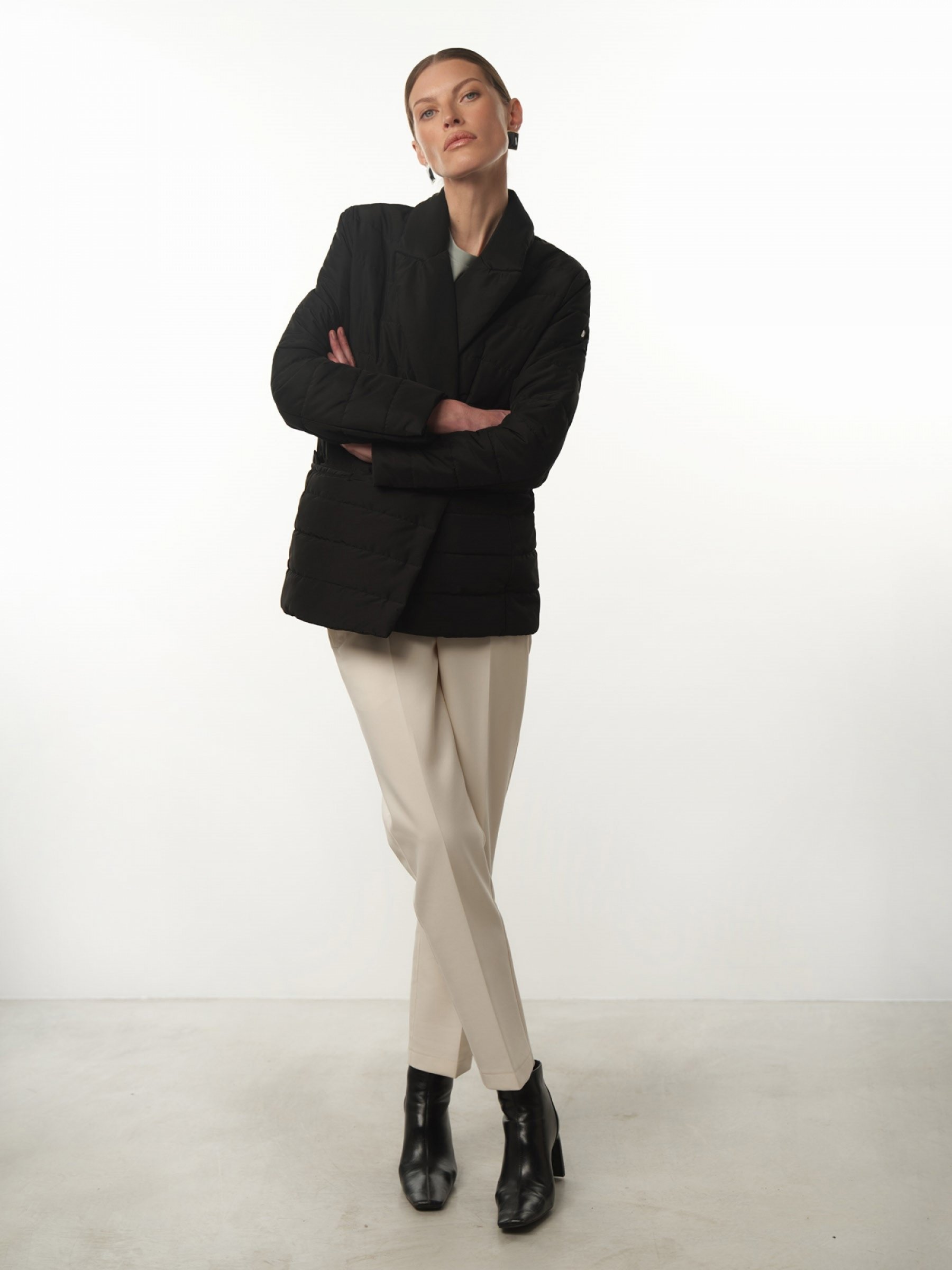 Утепленная куртка с английским воротником станет основой множества стильных образов. Выполнено из легкой прочной ткани, утеплено синтепоном. Модель оформлена горизонтальной стежкой, застегивается на кнопки, дополнена прорезными карманами с клапанами. Пояс с пряжкой в тон изделия подчеркивает талию. Куртка выполнена в трех актуальных базовых цветах: бежевом, светло-бежевом и черном. верх: 100% полиэстер; подклад: 100% полиэстер; наполнитель: 100% полиэстер