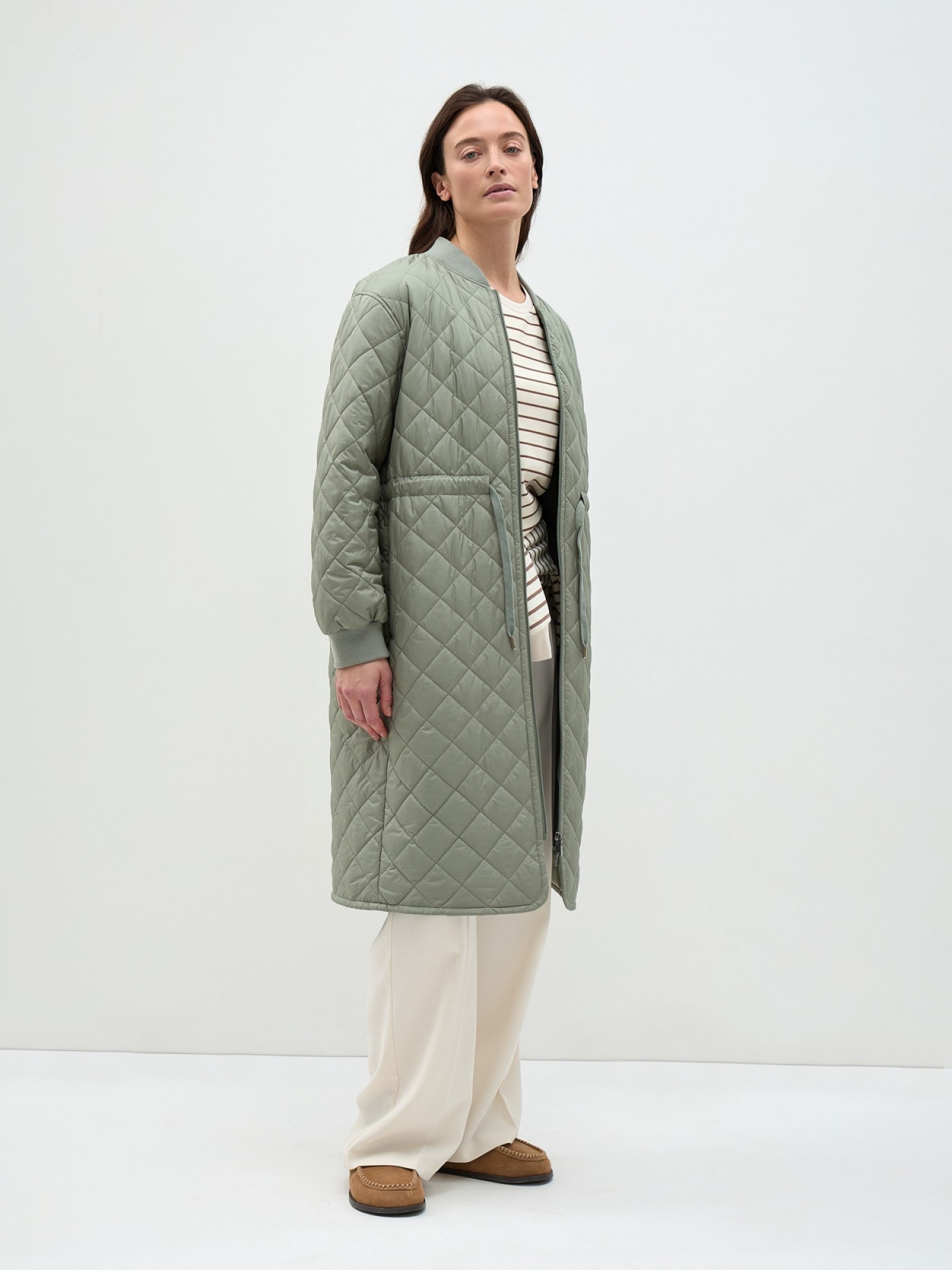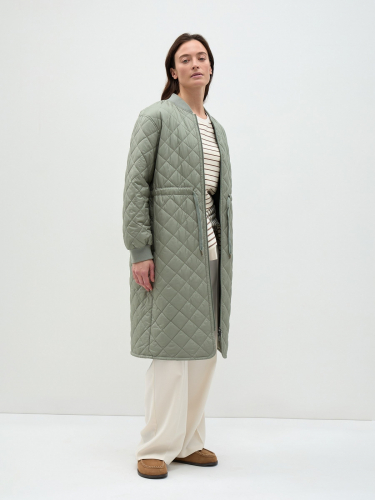 Удлиненное пальто-бомбер с открытой кулисой на талии – амбассадор функциональной кэжуальности. Для верха выбрана тонкая непродуваемая ткань, наполнитель – среднеплотный высокотехнологичный синтепон, а длина недосягаема для уличных брызг, что идеально для демисезона. Воротник и манжеты оформлены плотной трикотажной резинкой. Декоративная отстрочка по периметру делает абрис графичным и аккуратным. Пальто надежно застегивается на нейлоновую молнию. Шелковистая подкладка в тон. верх: 100% полиэстер; подклад: 100% полиэстер; наполнит: 100% полиэстер