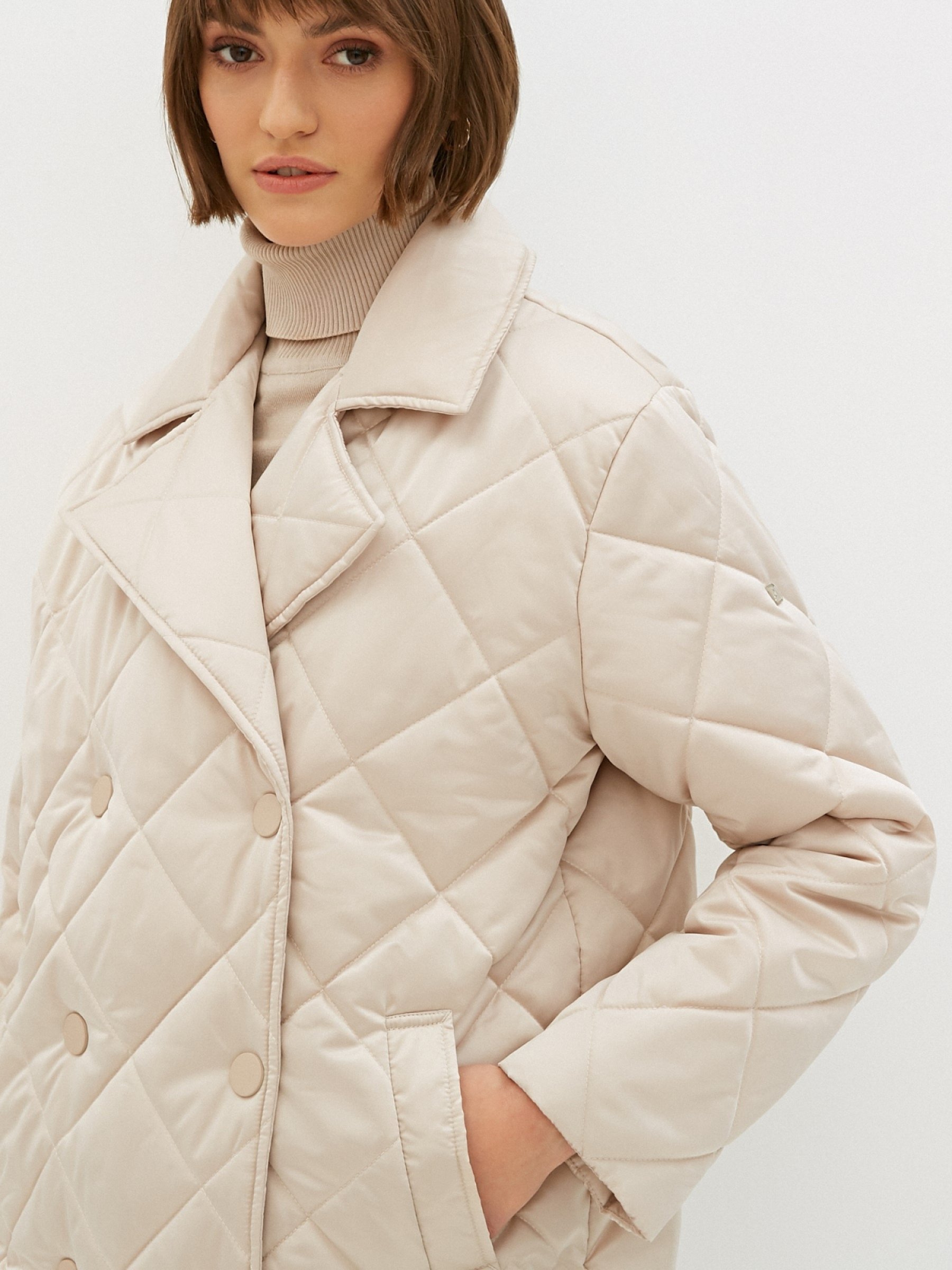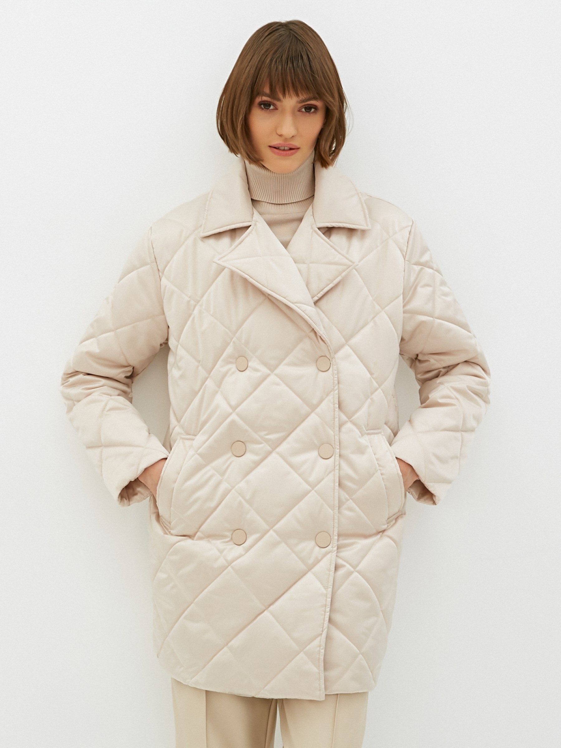 Женственное полупальто-жакет свободного силуэта длиной выше колен. Двубортная модель с отложным воротником застегивается на два ряда кнопок. Модель оформлена ромбовидной стежкой. Пальто изготовлено из прочной, легкой, приятной на ощупь ткани, утеплено синтепоном, гарантирущем комфорт, легкость и простоту в уходе. верх: 100% полиэстер; подклад: 100% полиэстер; наполнитель: 100% полиэстер