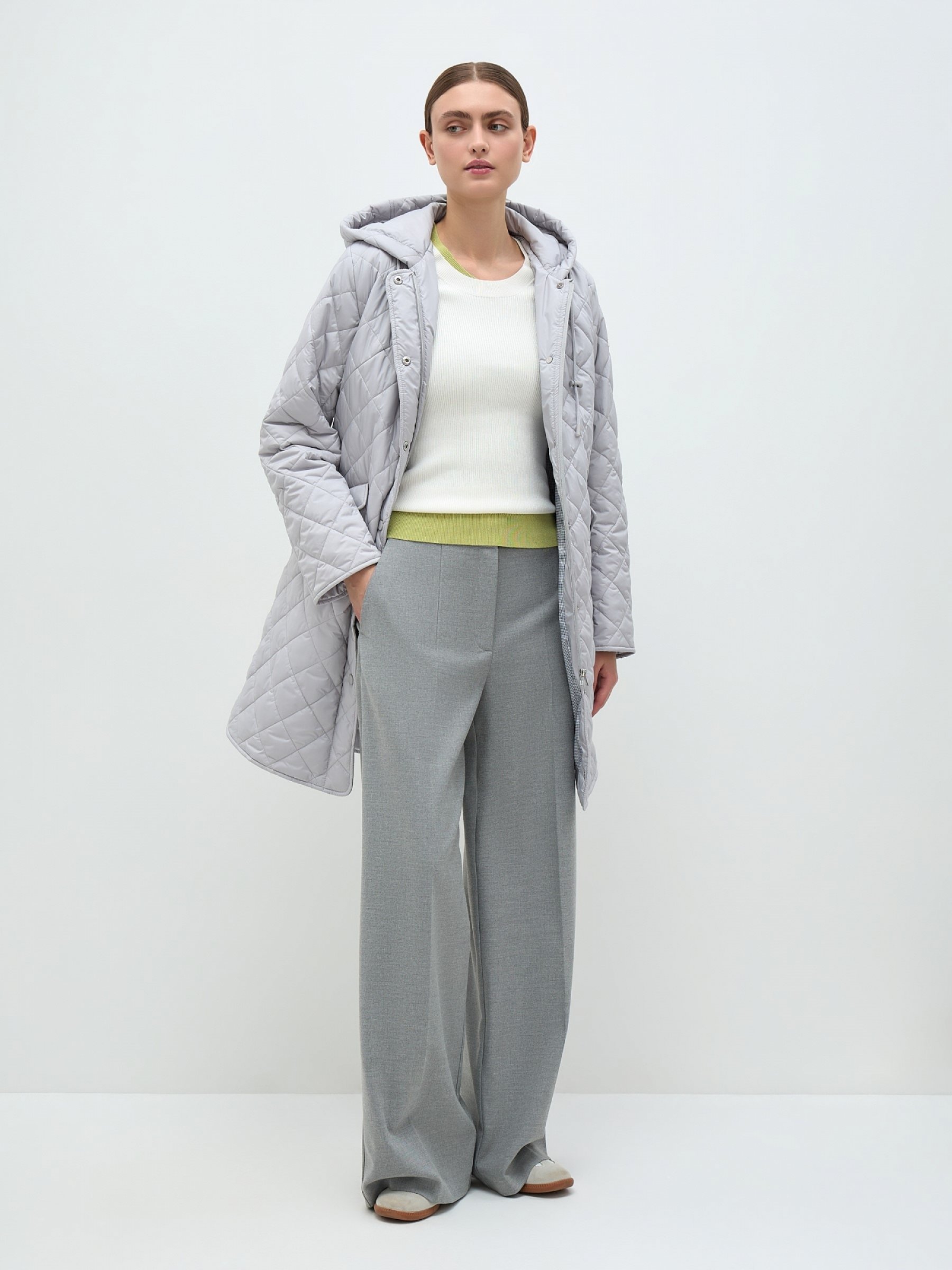 Стеганое кэжуальное полупальто с капюшоном – идеальный компаньон для холодного демисезона. За тепло отвечает прочная непродуваемая ткань и среднеплотный синтепон последнего поколения. Несъемный утепленный капюшон регулируется завязками с фиксаторами. Модель дополнена вместительными карманами с клапанами на матовых металлических кнопках. Надежная двойная застежка на нейлоновую молнию и ряд матовых металлических кнопок на широкой планке защищают от продувания. Шелковистая подкладка в тон. верх: 100% полиэстер, подклад: 100% полиэстер, наполнитель - 100% полиэстер
