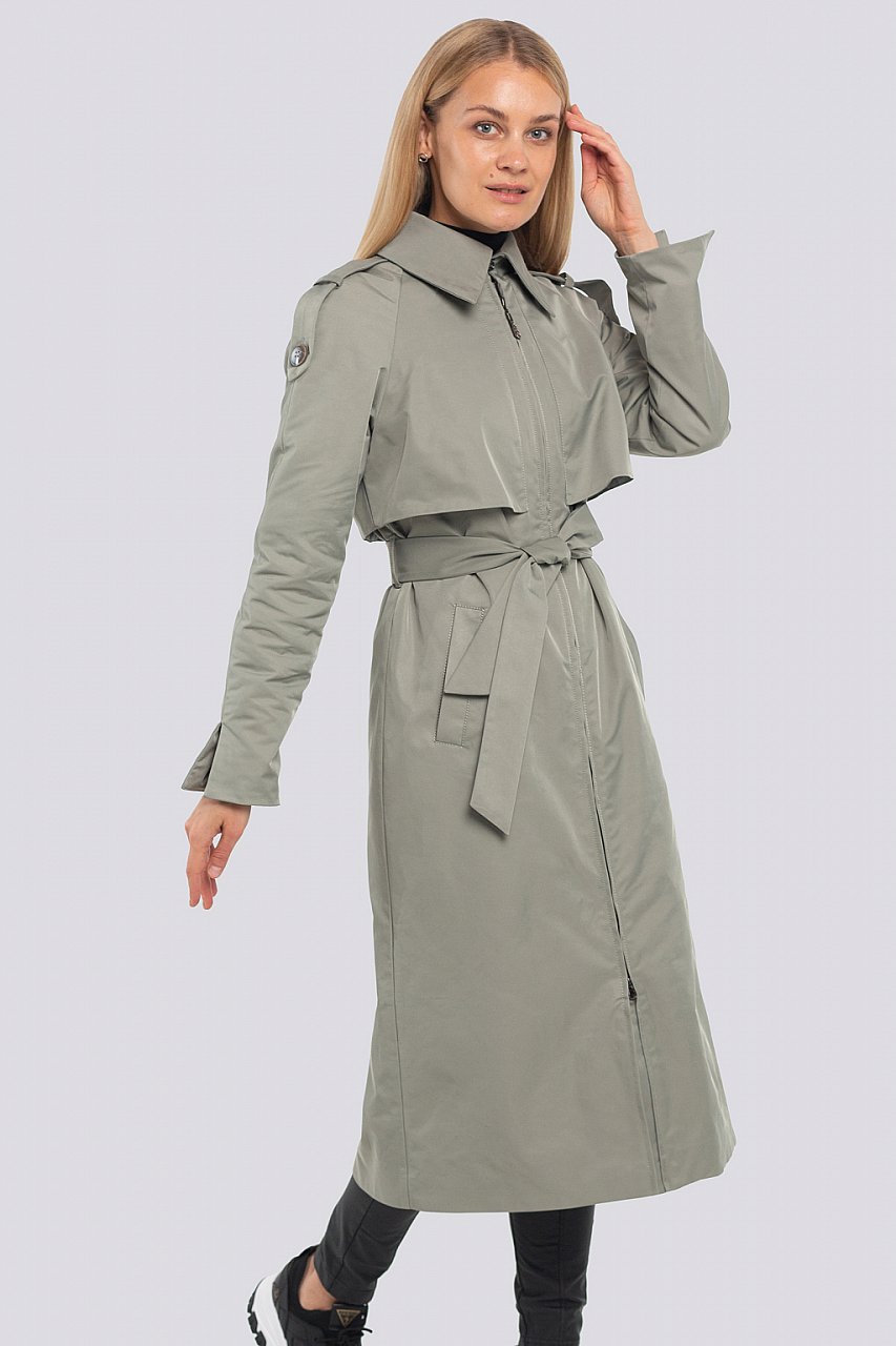 находка. Длинный плащ полуприлегающего силуэта с застежкой на «молнию» . Рукава
