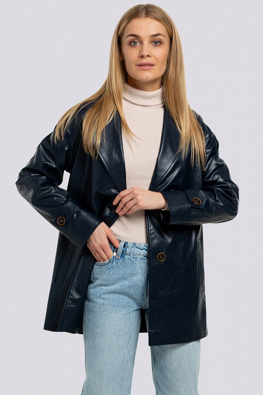 Экокожа все также продолжает оставаться в главных фэшн-трендах этого сезона. И одним из трендовых предметов гардероба, представленных в кожаном исполнении будет жакет. Стильный, универсальный и слегка дерзкий жакет свободного кроя и спущенной линией плеч. Английский воротник, застежка на петли и пуговицы. На переде карманы с листочкой, на рукавах декоративные паты с пуговицами. Талию можно подчеркнуть с помощью пояса.
