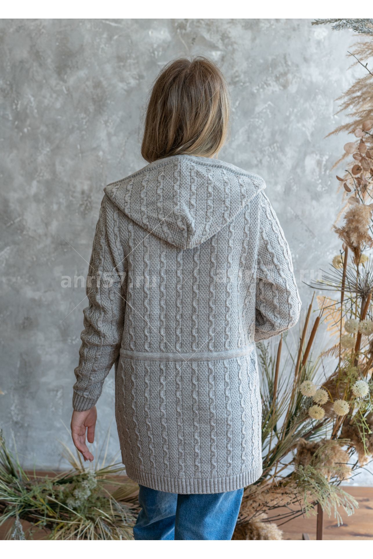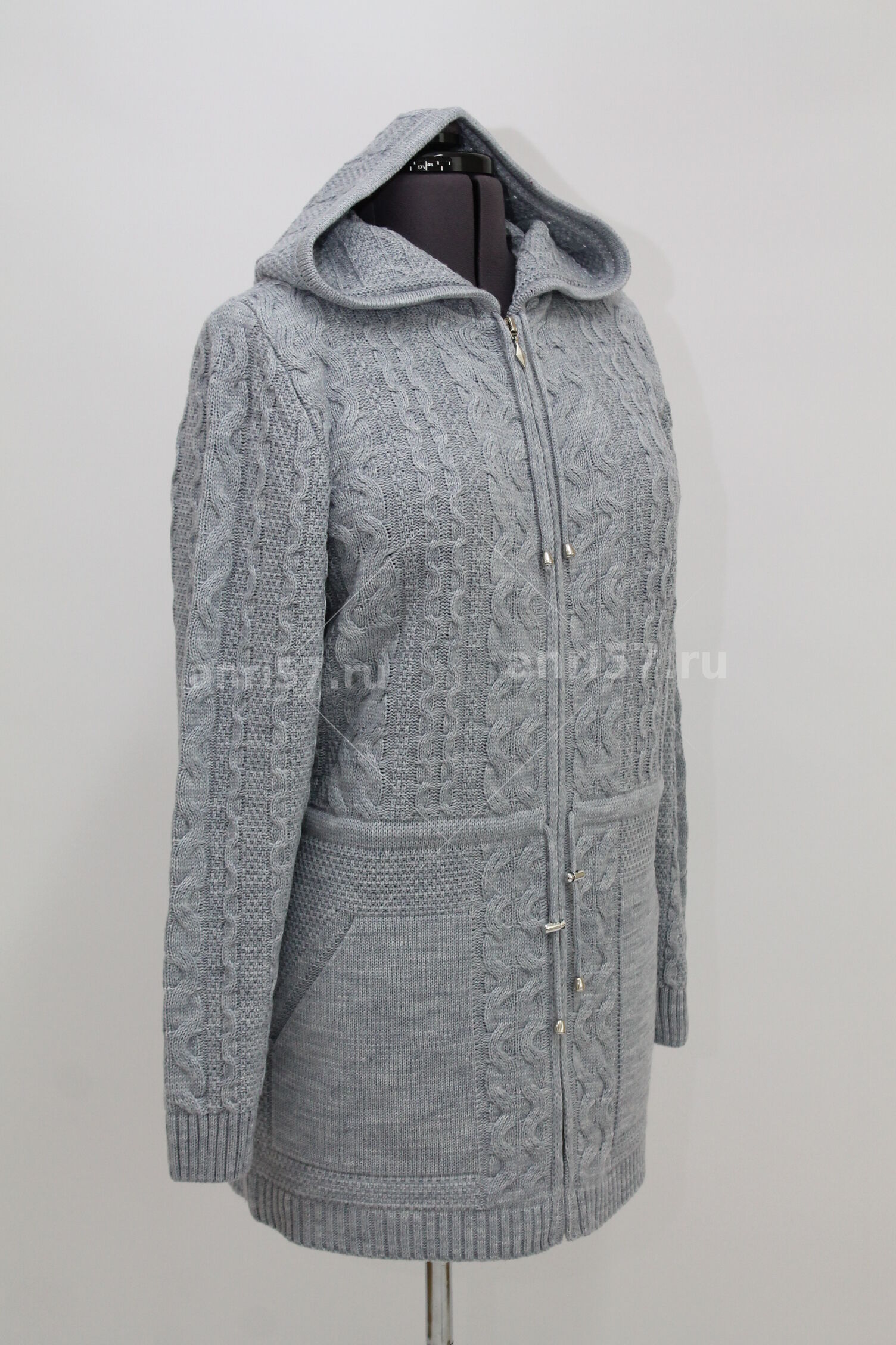 Парка женская ж0493ВЕЛИКАН. Куртка-парка полуприлегающего силуэта из фактурного вязаного полотна на центральной застежке "молния", с капюшоном. На полочках вывязанные карманы. Рукав втачной на "резинке" по низу. Капюшон и кулиска стягиваются на шнур с фиксаторами-ограничителями.