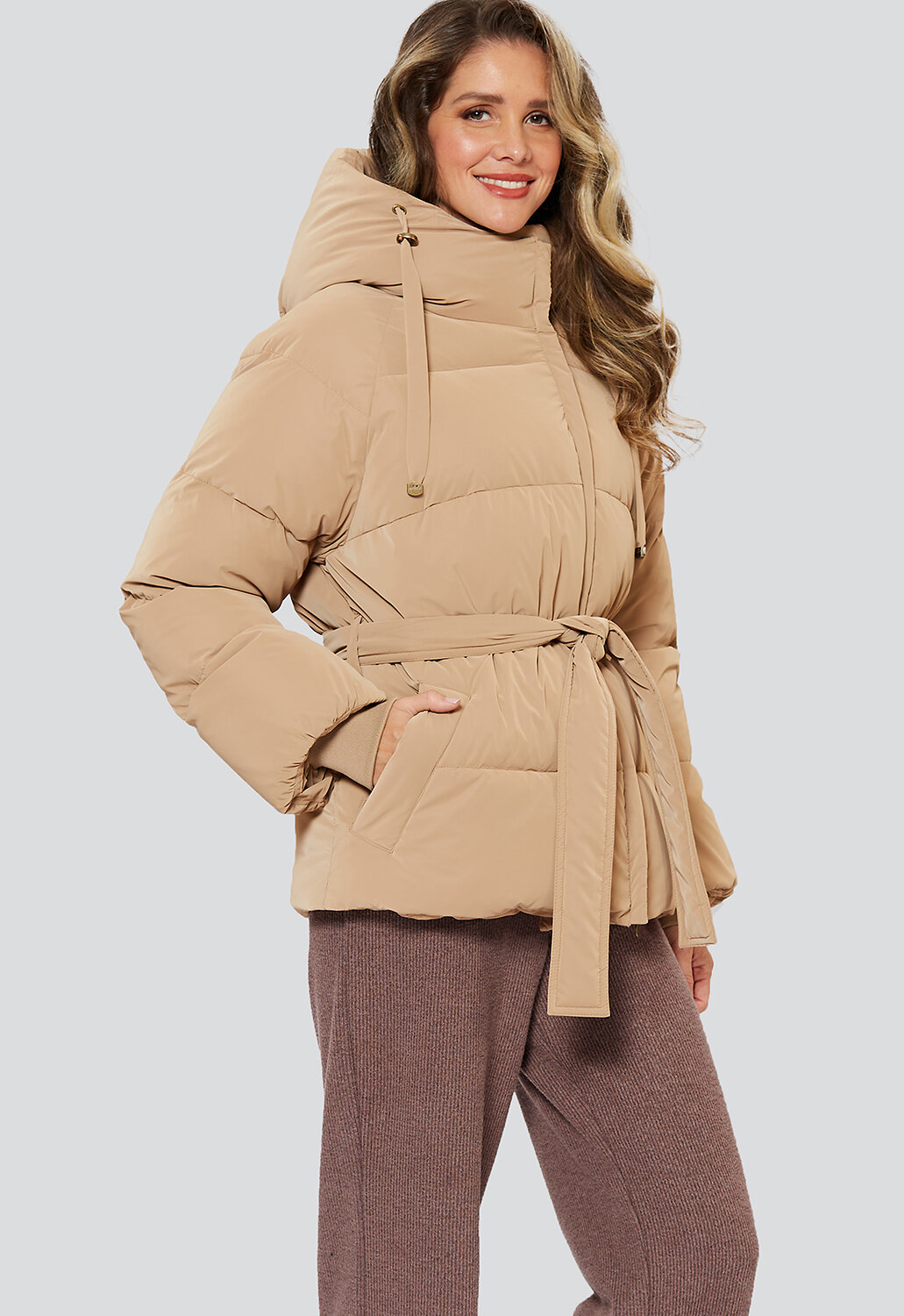Модная, объемная женская зимняя куртка комфортной длины от российского производителя D’imma Fashion Studio с водоотталкивающей пропиткой прямого силуэта, утепленная СинтеПухом, согреет в мороз и прослужит не один сезон. Модель из полуматовой бархатистой ткани с полиуритановым напылением, придающим усиленные влаго- и ветрозащитные свойства изделию. Декоративная лаконичная стежка делает ее интересной и стильной. За дополнительную защиту от непогоды отвечает воротник-стойка на кнопках, переходящий в несъемный капюшон со шнурком, регулирующим объем капюшона. Модель с застежкой на двухзамковую молнию и внутренним ветрозащитным клапаном. Рукава с трикотажной манжетой, помогающей регулировать длину рукава. Внутри по талии и низу куртки кулиски, регулирующие объем и теплосохранение. Модель с врезными карманами на кнопке с листочкой. Пояс в комплекте. Большие размеры. Такая зимняя куртка-пуховик идеально подойдет как для активного стиля жизни, так и для неспешных прогулок даже в самую морозную погоду.