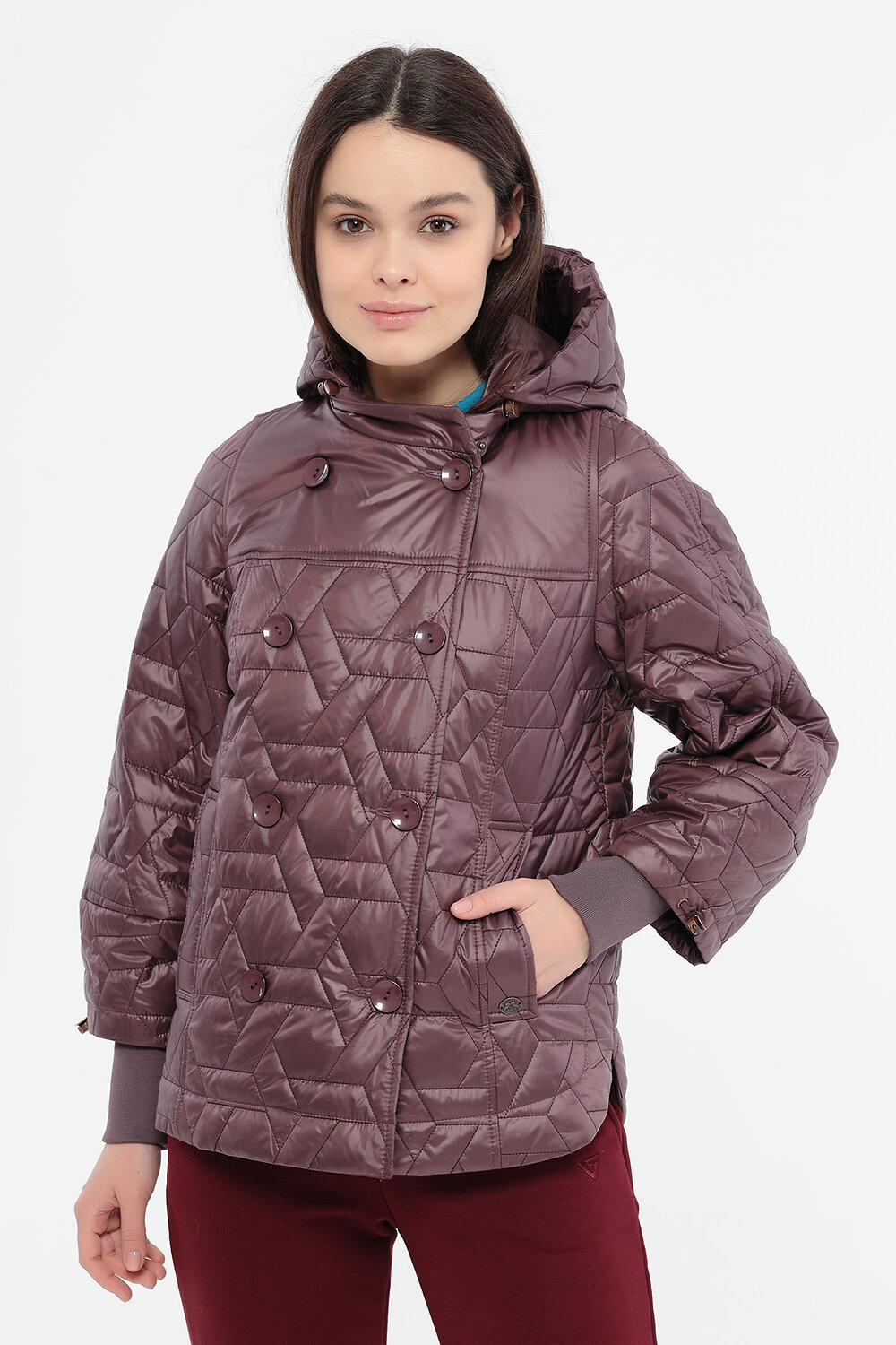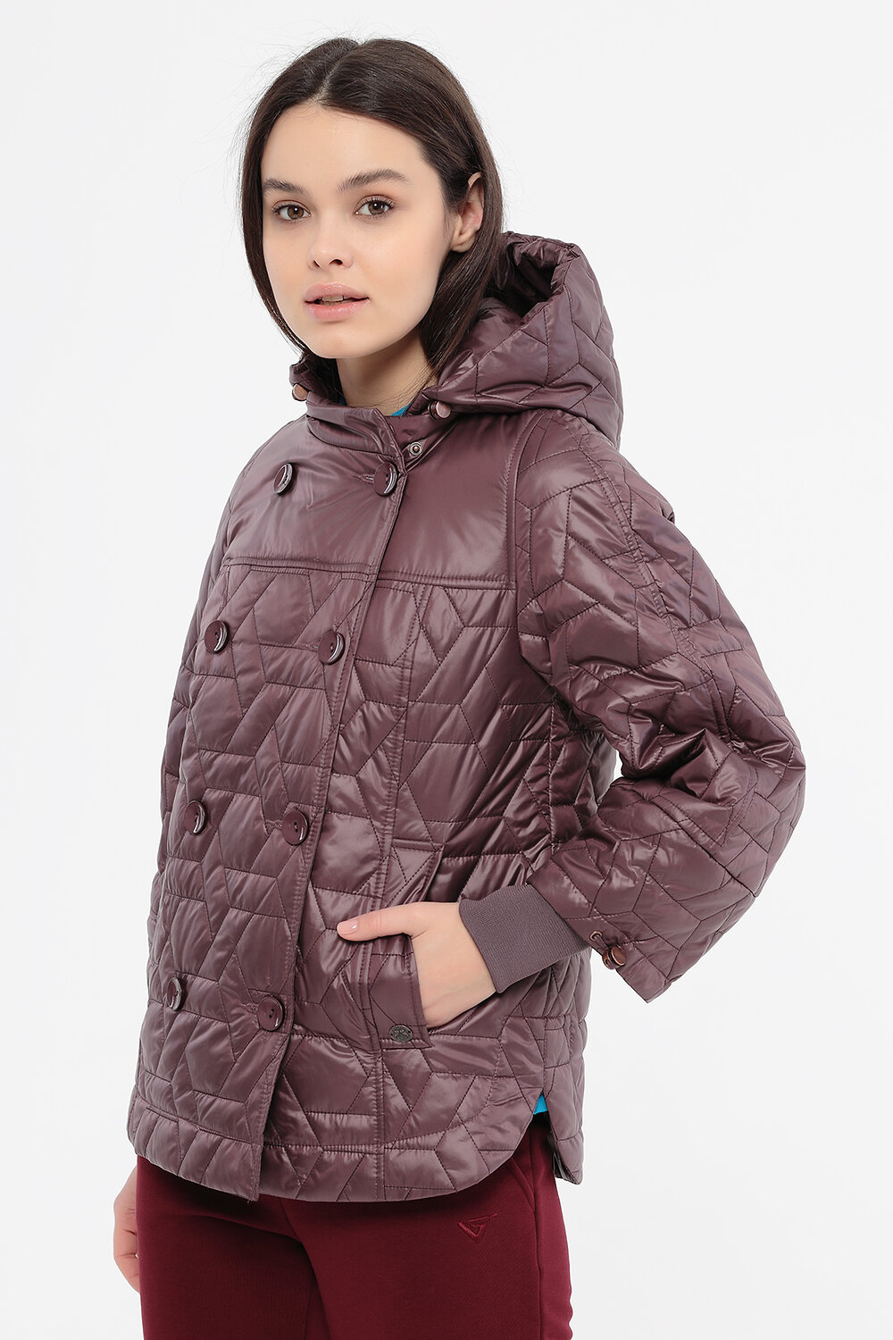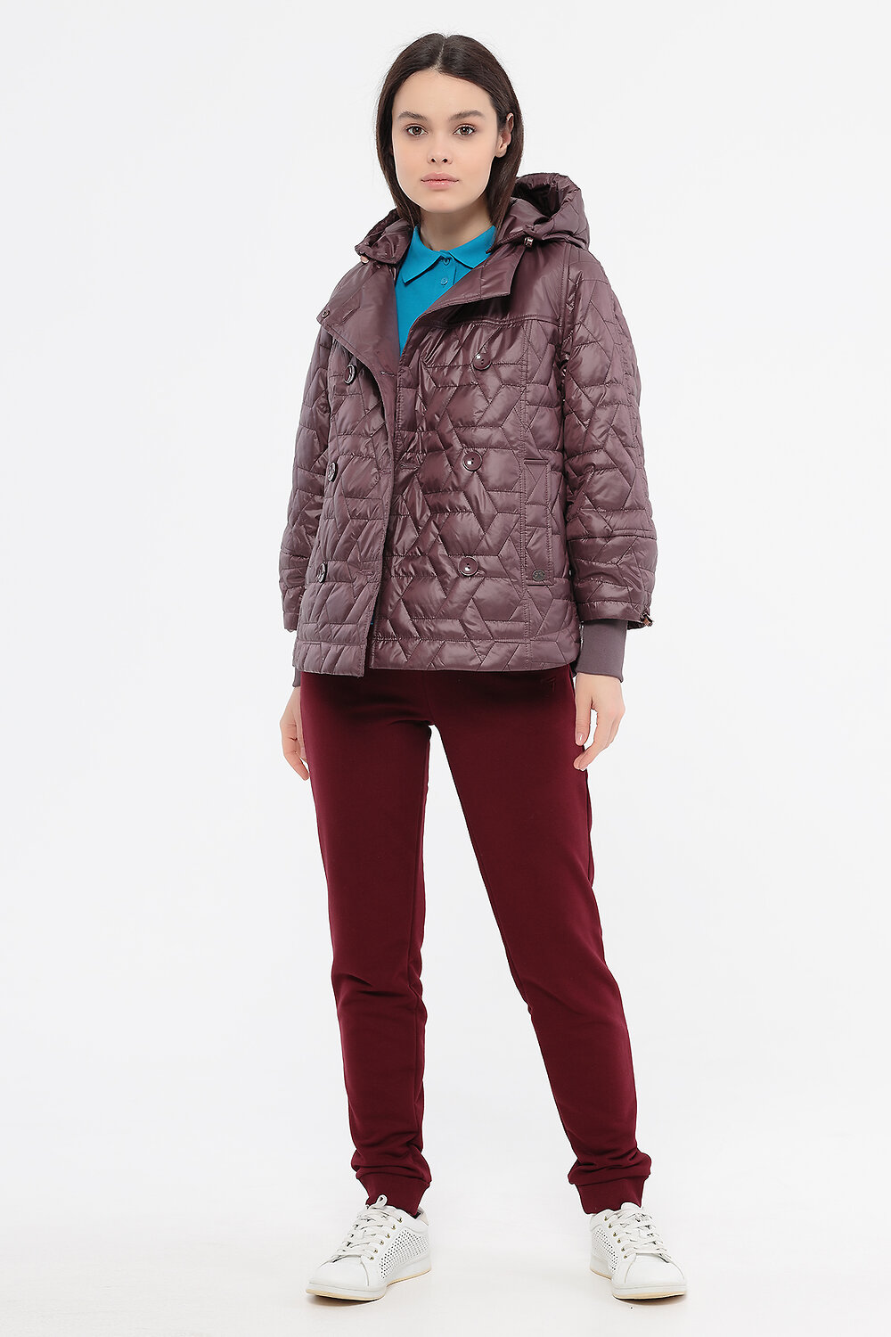 Утепленная куртка российского производства бренда D'imma из стеганной ткани с водоотталкивающей пропиткой. Двубортная застежка на пуговицы, воротник-стойка, фигурные разрезы по бокам. Оригинальные расширенные рукава-реглан с кулиской и длинными трикотажными манжетами. Капюшон с кулиской пристегивается на кнопки. Удлиненная спинка, оригинальные скругленные разрезы по бокам. Широкий размерный ряд, в наличии большие размеры.