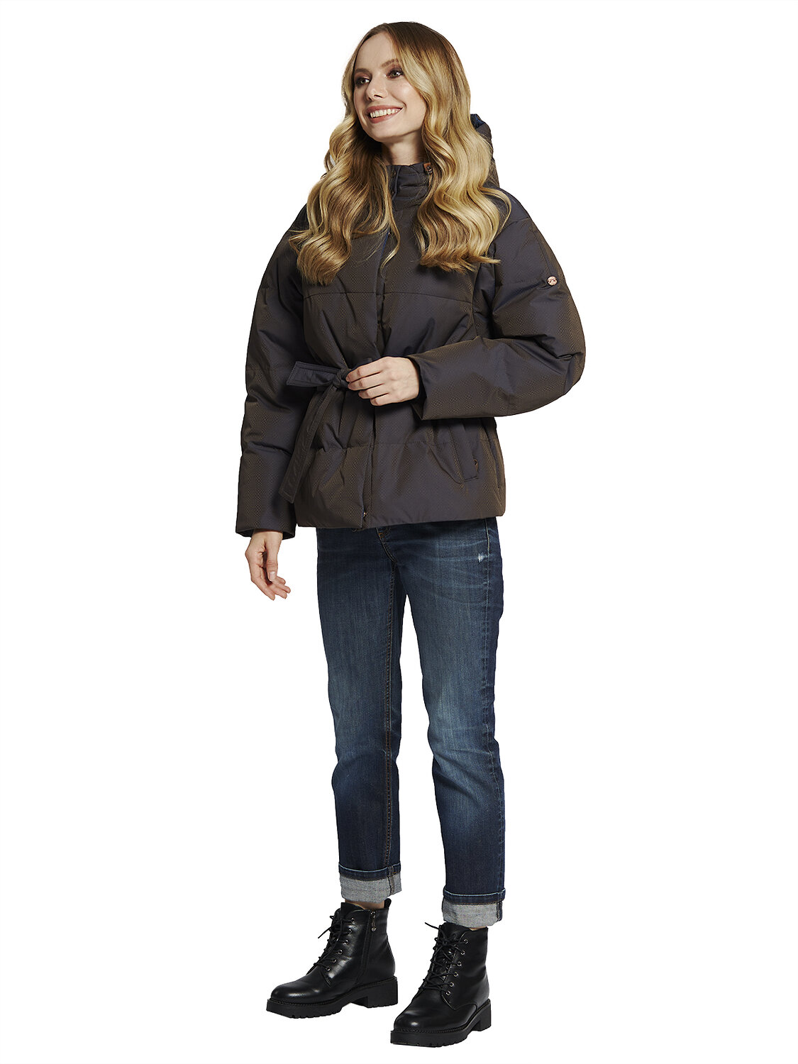 Модная зимняя утепленная куртка из ткани с эффектом "шанжан" от российского производителя D’imma Fashion Studio. Кулиска по низу изделия и скрытая кулиска на талии. Капюшон не отстегивается. Карманы на молнии. Центральная застежка на молнию и кнопки. Широкий размерный ряд, в наличии большие размеры.
