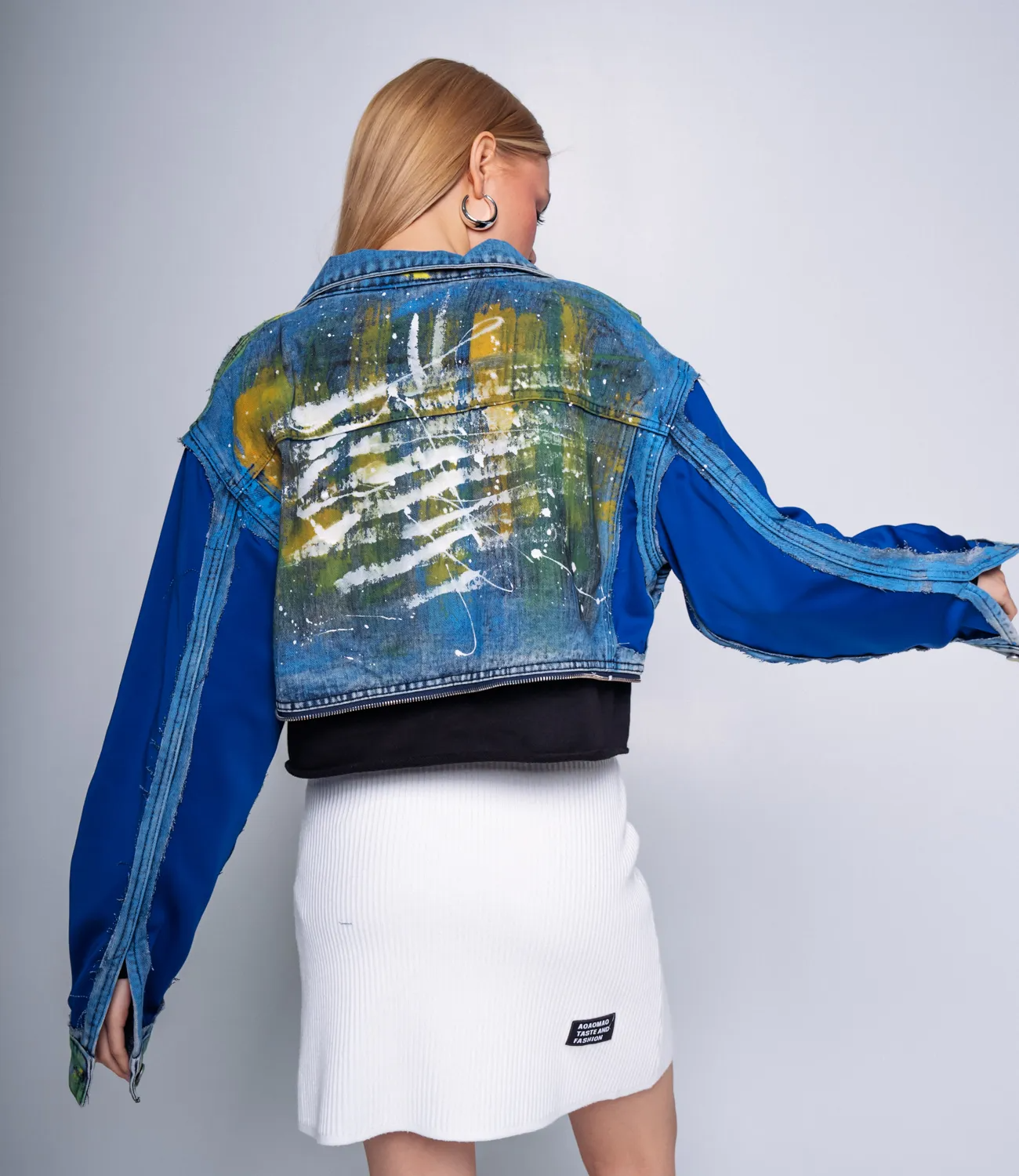 Эта джинсовая куртка имеет укороченный крой, останавливаясь на уровне талии или выше. Такой стиль подчеркивает вашу фигуру и добавляет образу современности и элегантности. Яркие разводы на куртке добавляют яркие цветовые акценты и делают её более яркой и привлекательной. Джинсовая куртка это универсальный элемент гардероба, который может быть сочетан с множеством других предметов одежды и аксессуаров. Она отлично сочетается с платьями, юбками, шортами или джинсами, позволяя создавать разнообразные и стильные сочетания.