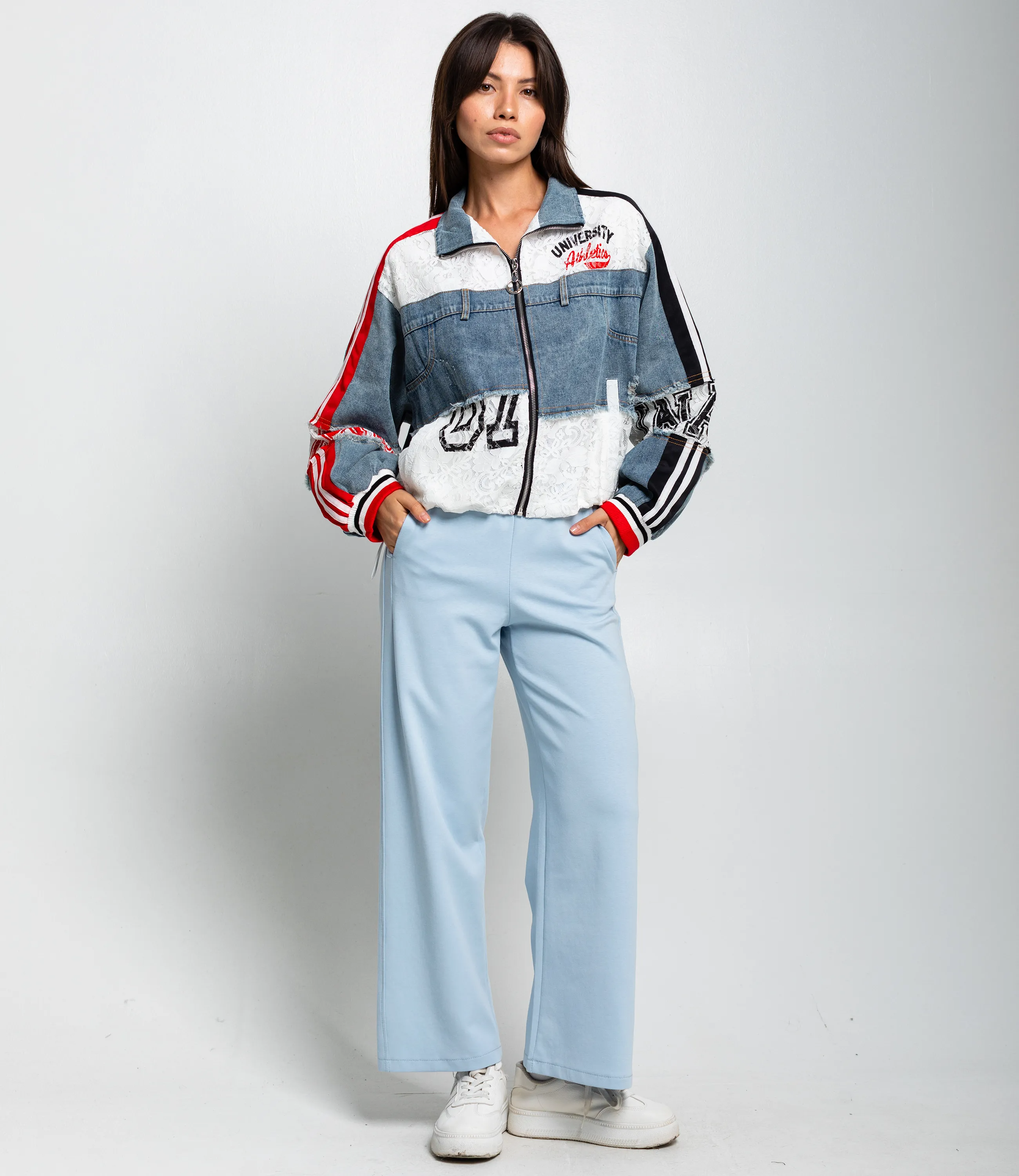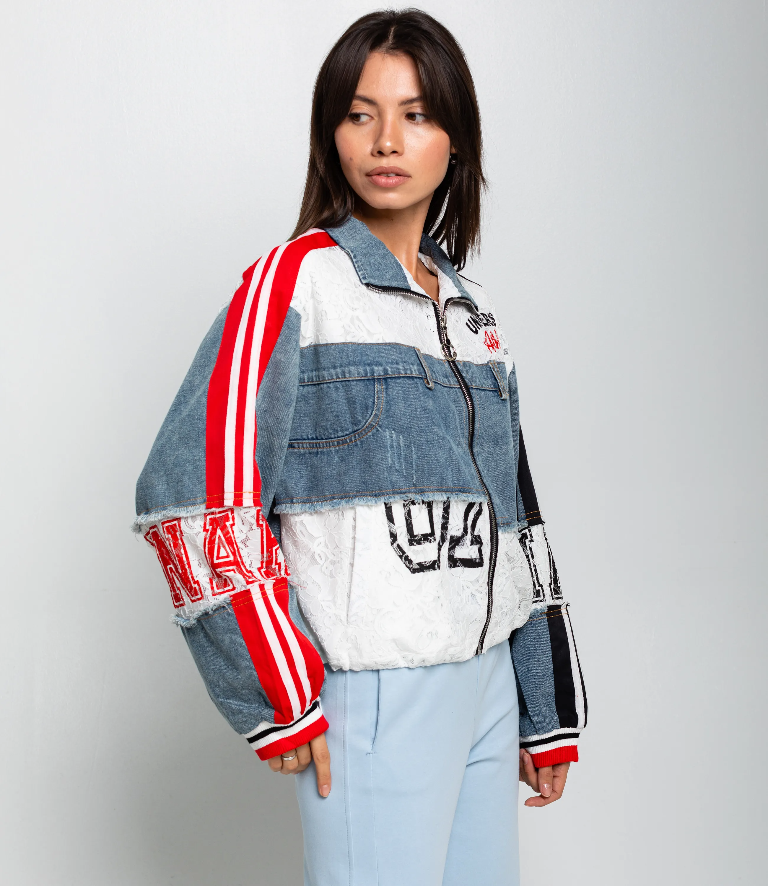 Куртка — это часть гардероба, которая подчёркивает привлекательность и индивидуальность каждой покупательницы. Куртка с прямым, чуть свободным кроем до линии талии. Модель с комбинированными вставками из тонкой ажурной ткани с цветочным орнаментом и мягкими потертостями. Воротник стойка, центральная застёжка — крупная металлическая молния с кольцом на бегунке. Длинные рукава с лёгким объёмом и выраженной плечевой линией украшены продольными декоративными полосами и вставками из другой ткани, завершены плотными эластичными манжетами с резинкой и декоративной строчкой. Для пошива использованы 65% хлопка и 35% полиэстера, сочетание натурального комфорта и синтетической надёжности. Хлопок обеспечивает приятные тактильные ощущения и хорошую воздухопроницаемость, полиэстер придаёт прочность, устойчивость к смятию и выцветанию, облегчает уход и увеличивает стойкость изделия при частых стирках. Рекомендуем позиционировать куртку как ключевой элемент капсулы smart casual, сочетая её с брюками высокой посадки, юбками‑карандаш или худи. Визуально подчёркивайте контраст текстур рукавов в витрине и онлайн‑карточке, предлагайте несколько базовых оттенков и одну‑две акцентные версии для увеличения оборачиваемости. Рост 164 см, 83-61-89.