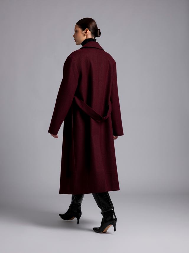 Мягкая линия спущенного плеча подчеркнет хрупкость фигуры, а женственность обозначит пояс на талии. Шерстяной помощник в борьбе с холодом, в идеальной длине – 120 см, обнимет комфортом до самых пят. Шагайте к своим целям гордо и уверенно под обволакивающим теплом прямого силуэта!