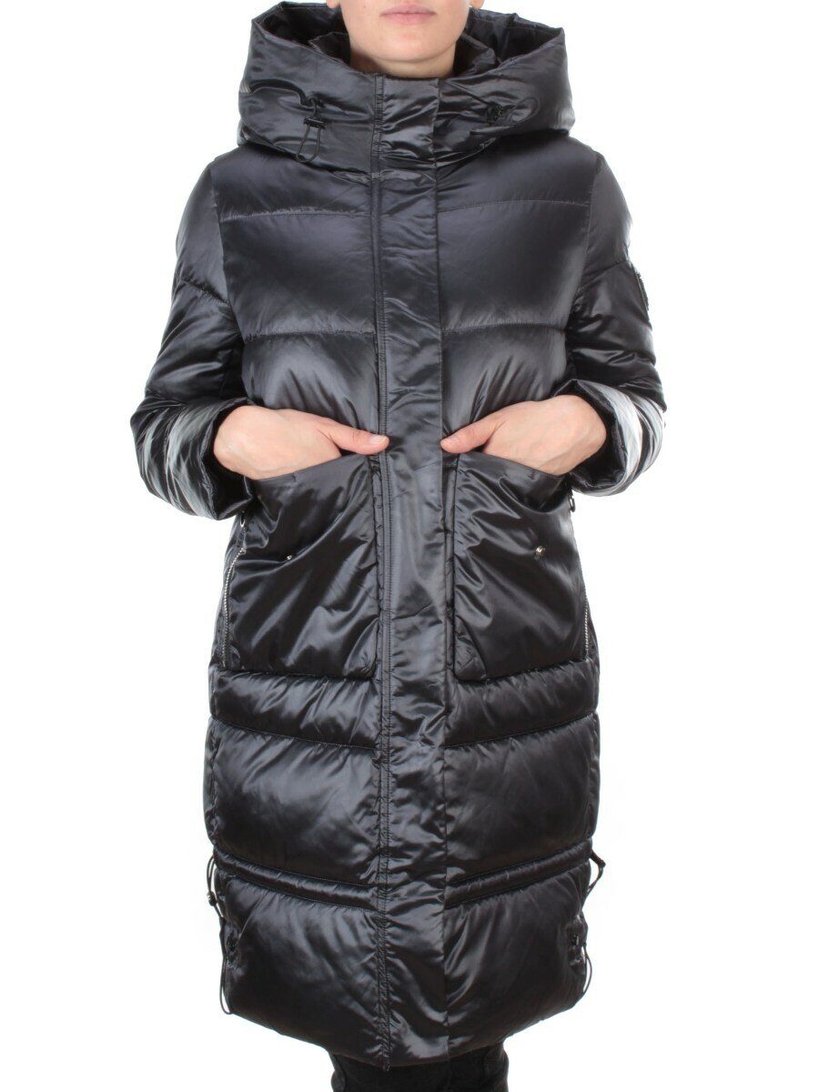 9106 BLACK Пальто зимнее женское FLOWEROVE (200 гр. холлофайбера)