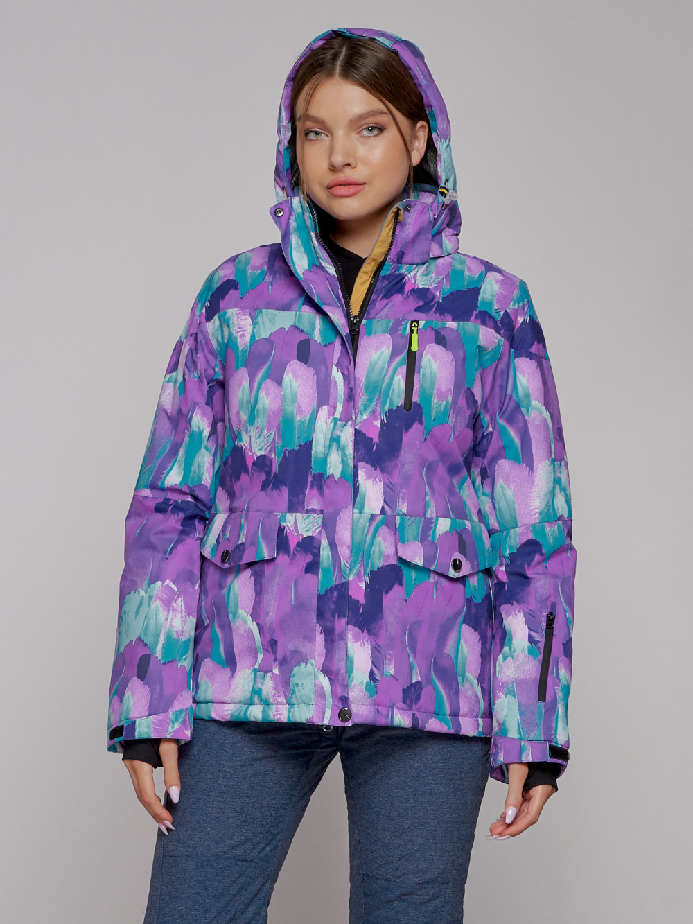 Горнолыжная куртка женская зимняя фиолетового цвета 2302-2F