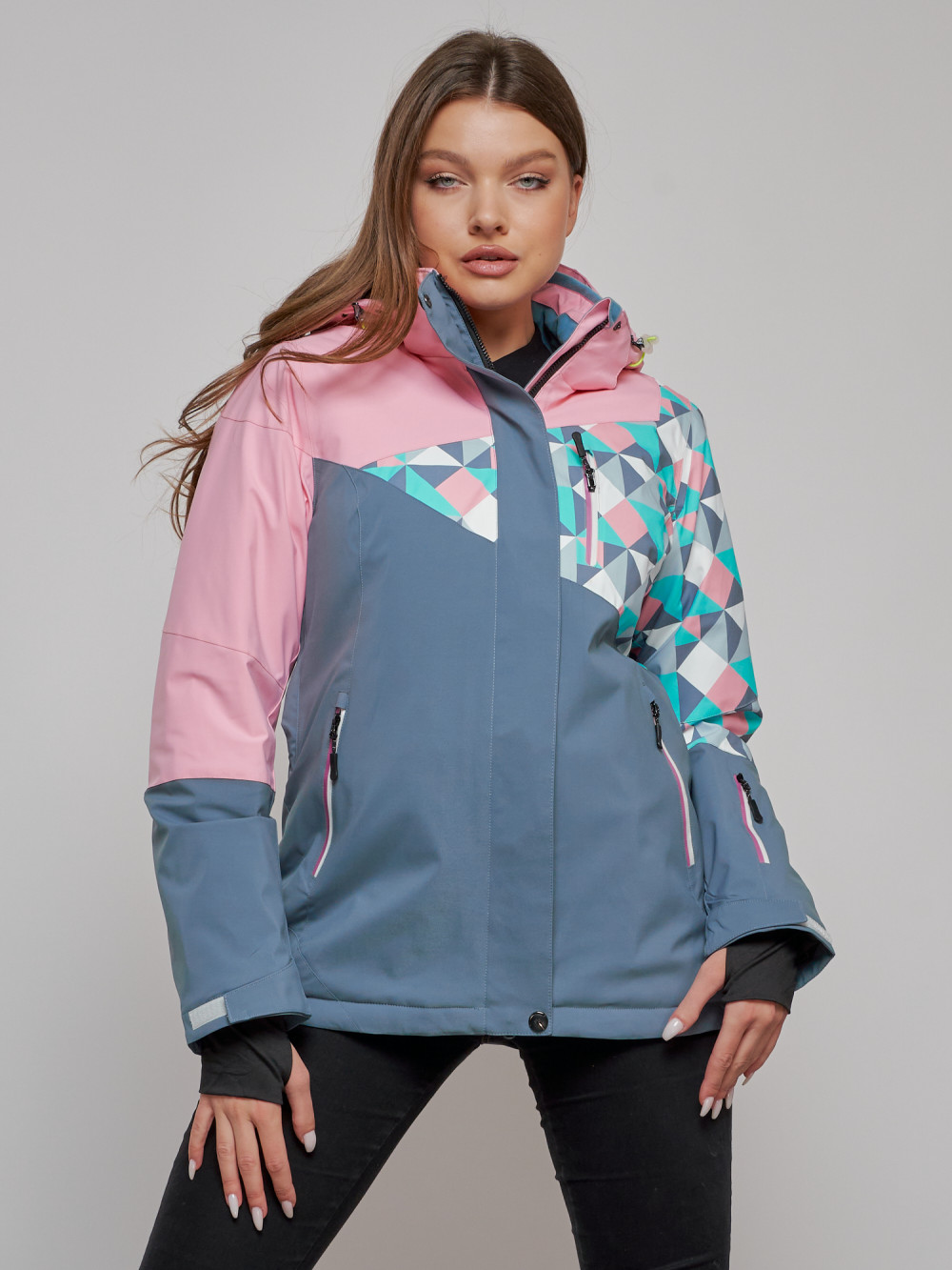 Горнолыжная куртка женская зимняя розового цвета 2337R