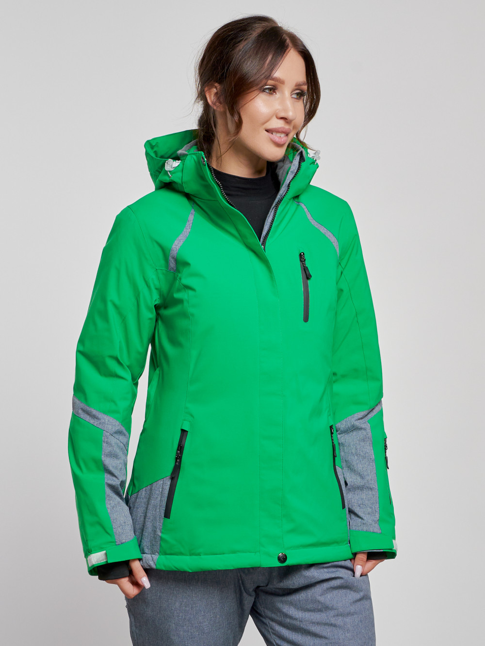 Горнолыжная куртка женская зимняя зеленого цвета 2316Z