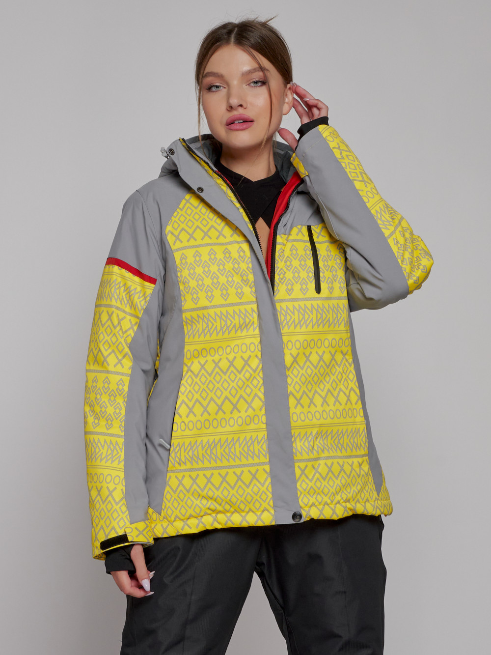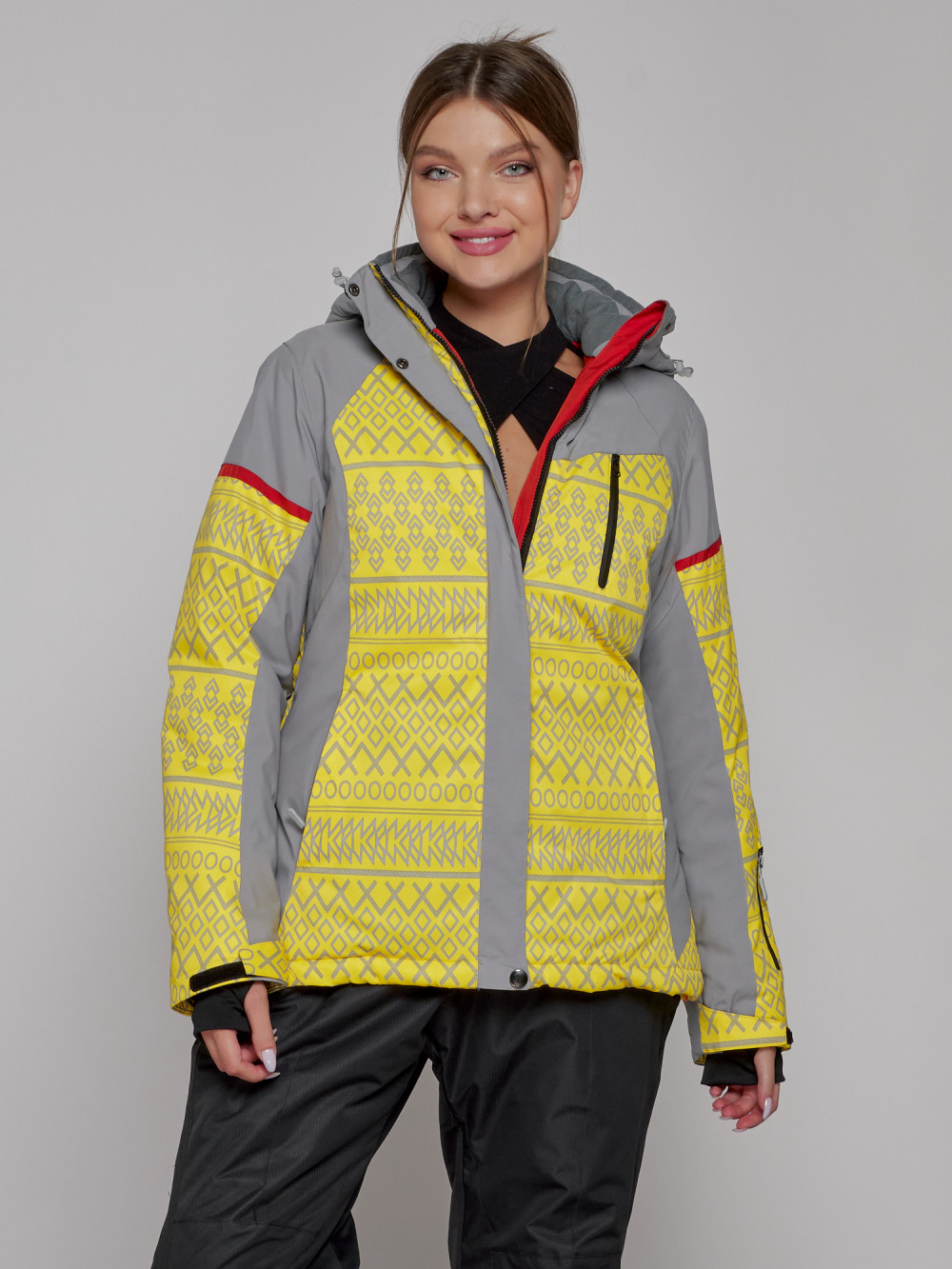 Горнолыжная куртка женская зимняя желтого цвета 2272J