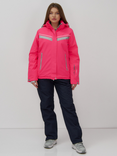 Однотонная куртка с контрастными вставками на рукавах и груди выглядит оригинально и стильно, что делает этот комплект не только практичным, но и модным выбором для зимнего отдыха.