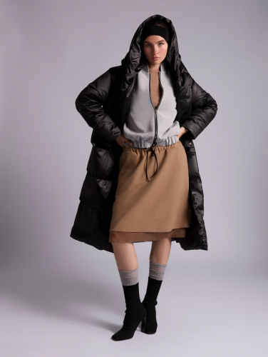 Пуховик силуэта трапеция – это максимум тепла вверху и свобода движения внизу. Пируэтам на коньках, перепрыгиванию луж и комфорту во время вождения быть! При желании пуховик можно приталить при помощи пояса, который идет в комплекте.