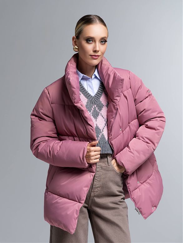 Пуховик женский темно-розовый