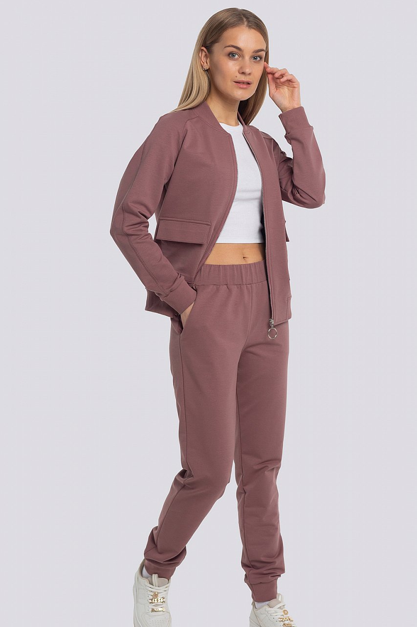 Стильный трикотажный костюм. Олимпийка-бомбер на молнии стала настолько универсальной, что женщины с большим удовольствием носят ее круглогодично. Накладные карманы с клапаном, брюки с манжетами, на талии – резинка. Модель представлена в контрастном сочетании и в однотонном, что удовлетворит запросы любой покупательницы. Состав трикотажа: 75% хлопок, 20% полиэстер, 5% спандекс. мокко