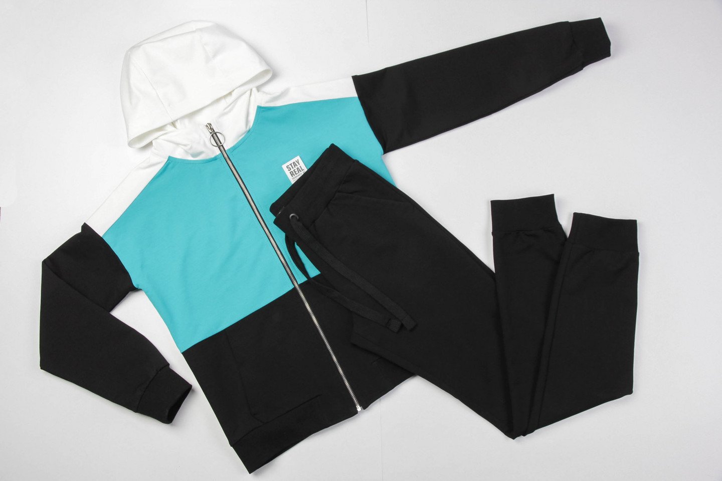 Спортивная одежда прочно вошла в жизнь современных людей, воплощая в себе комфорт, функциональность и практичность. В связи с этим огромную популярность приобрели трикотажные спортивные костюмы. Они подойдут не только для занятий спортом, но также и для отдыха на природе или прогулки. Яркие цветовые сочетания придадут образу свежесть. Застежка на молнию, удобный карман-кунгуру, капюшон. Брюки на резинке, дополнительно объем по талии регулируется шнурком, внизу манжет. Состав трикотажа: 75% хлопок, 20% полиэстер, 5% спандекс.