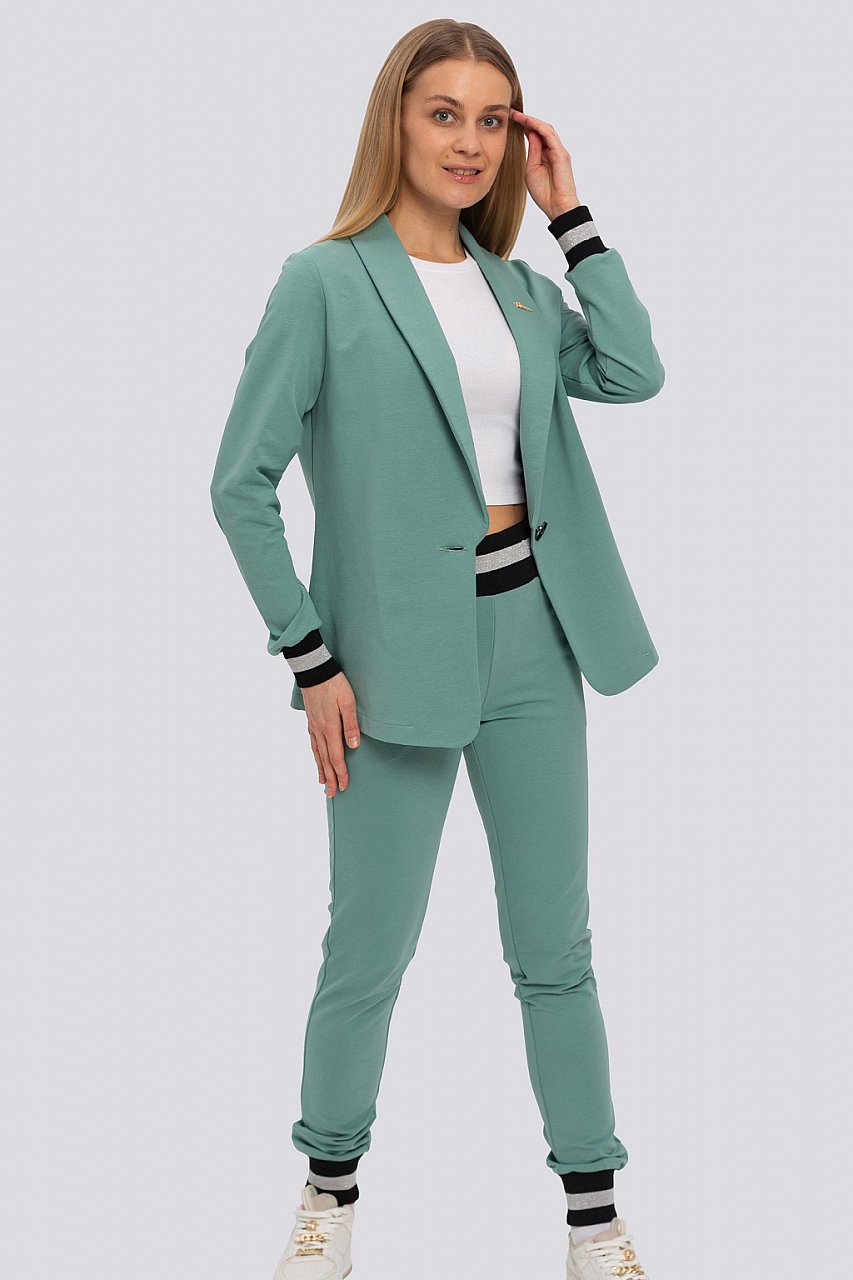 Забудьте об элегантных и отполированных луках, ведь на замену такому идеальному стилю пришло небрежное сочетание практичных, и на первый взгляд, несовместимых вещей из спортивного и классического стилей. Этот универсальный трикотажный костюм-идеальный вариант в качестве стильной и комфортной одежды на каждый день. Состав трикотажа: 75% хлопок, 20% полиэстер, 5% спандекс. зеленая мята