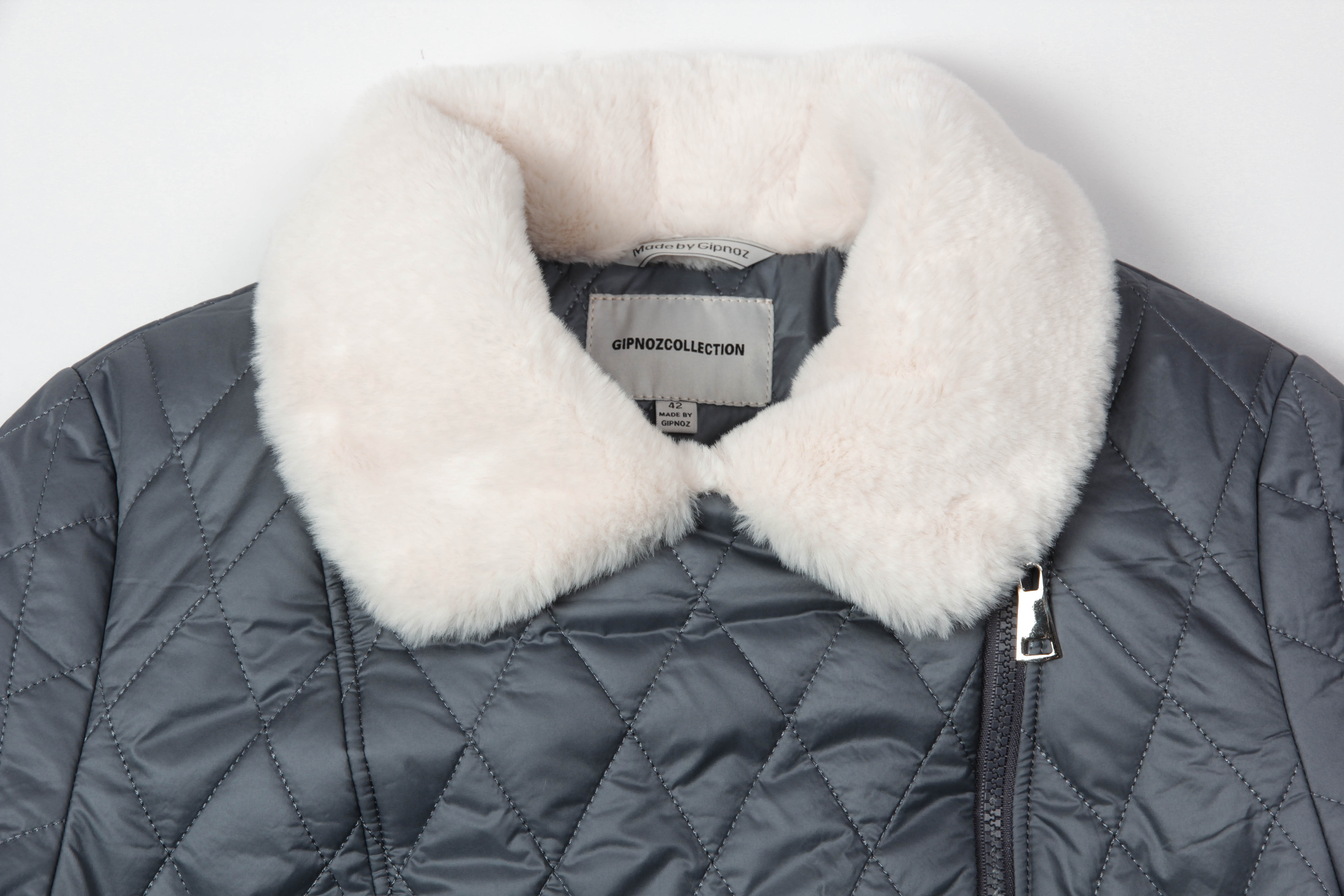 Классная куртка-косуха является незаменимым атрибутом современной женщины. Наша модель выполнена из стеганой ткани, она легкая, комфортная в носке, сочетается с любой одеждой. Объем изделия умеренный, силуэт прямой, втачной покрой рукава выигрышно смотрится на любой фигуре. Застежка на молнию, застегивается до верха, а также раскладывается на отложной воротник с лацканами. Спинка по линии низа собрана на резинку. Рукав загибается на манжет. Экомех молочного цвета невероятно мягкий, красиво смотрится у лица. Мех отлично переносит стирку в машинке (деликатный режим), при высушивании его рекомендуется расчесать щеткой, чтобы сохранить первоначальный вид. Утеплитель термофин, плотность 160. Температурный режим до -5. графит