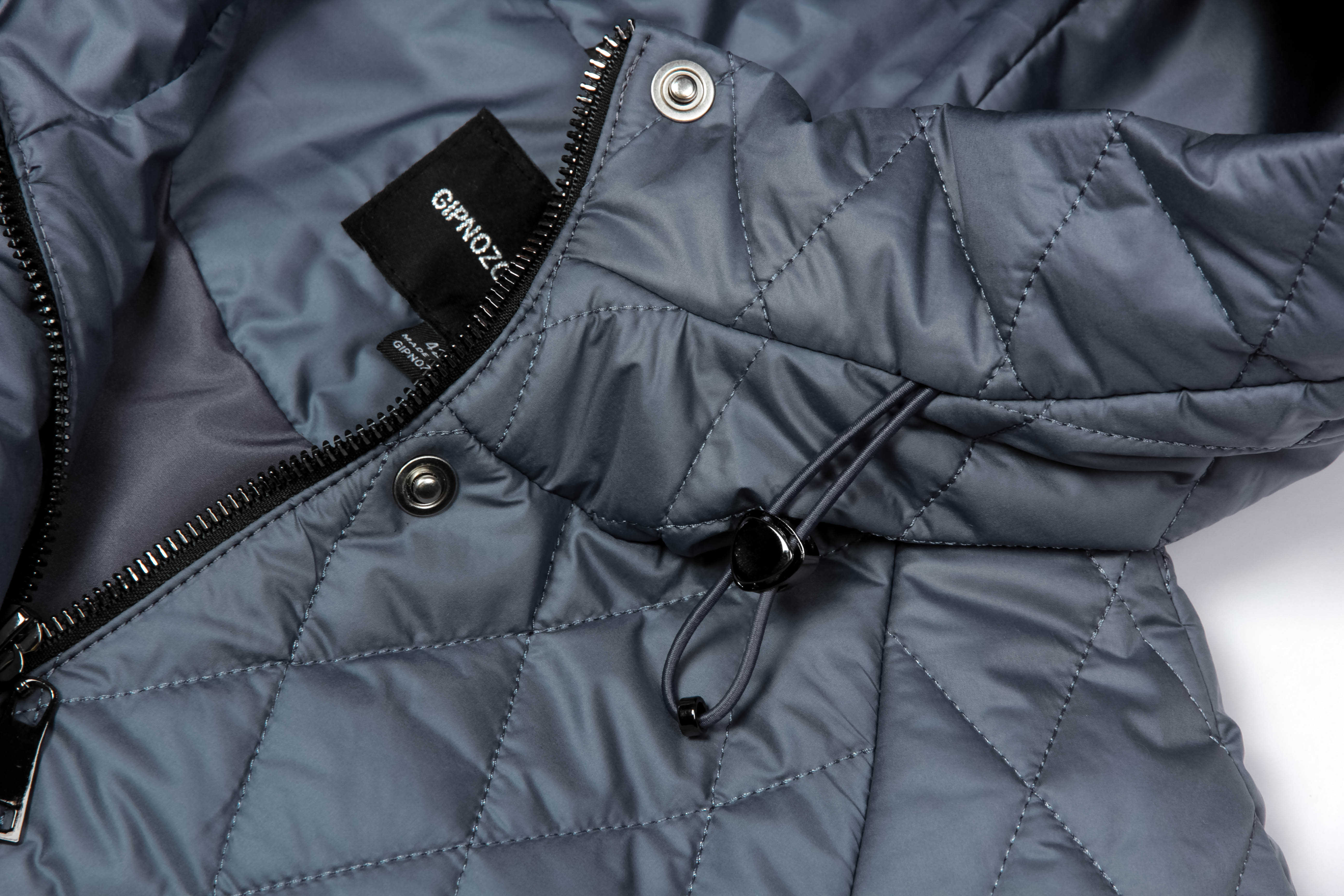 свободу движений. Удобный капюшон с кулисой защитит от дождя и ветра. Фигурная линия