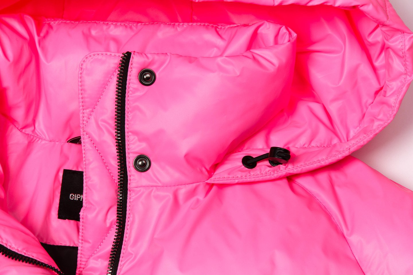 прикрытую планками, по низу изделия и краю капюшона кулиса. Цветовая гамма