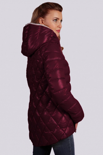 Теплая курка для ранней весны силуэта трапеция порадует любую модницу, ценящую качество и комфорт. Актуальной эту модель делает разная стежка на деталях переда и спинки, а также оригинальное использование отделки серой репсовой лентой. Удобный втачной рукав внизу слегка присборен на резинку. Центральная застежка на молнию, удобные карманы с потайными кнопками и отстегивающийся капюшон делают эту модель очень практичной. Низ изделия оформлен фигурной линией, объем по низу изделия регулируется кулисой, спинка длиннее передней части на 9 см. Утеплитель синтепух-синтетический пух. Температурный режим до -10. вишневый