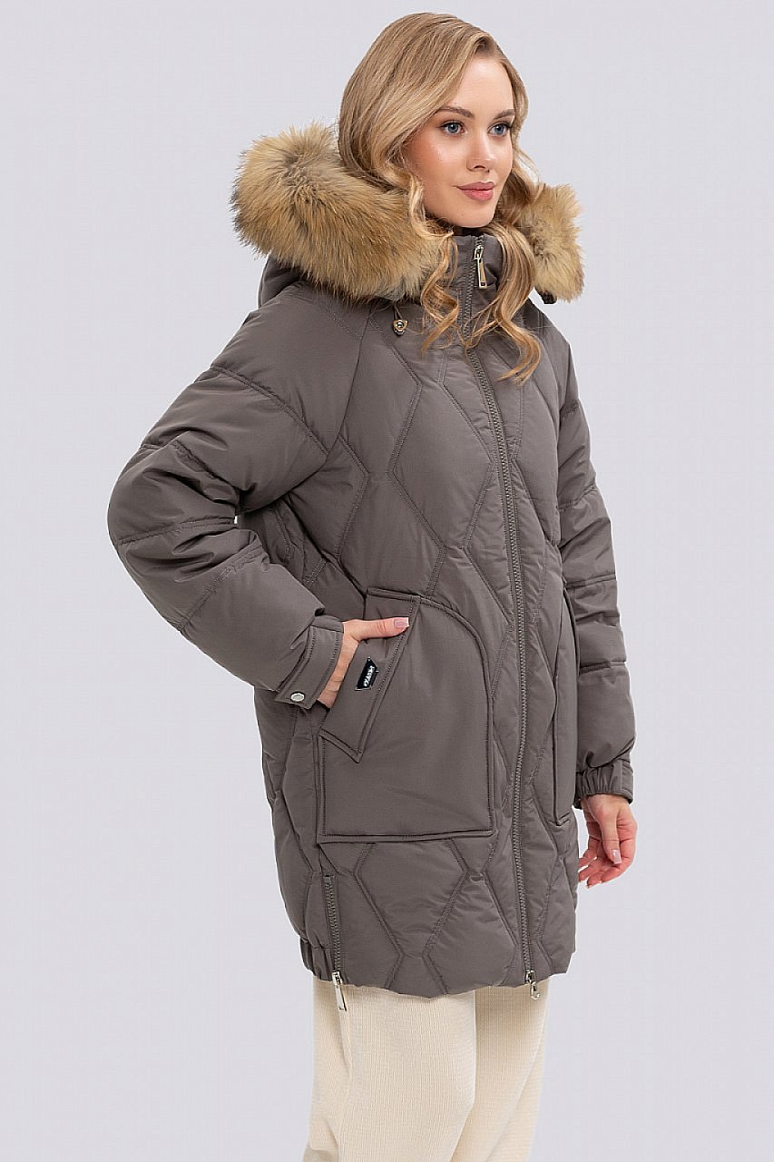 Эта куртка – идеальный выбор для тех, кто ценит комфорт, тепло и стиль в зимнюю погоду. Свободный крой обеспечивает свободу движений и позволяет носить куртку с любыми вещами, создавая расслабленный и современный образ. Наполнитель из синтепуха, плотностью 260 г/м гарантирует отличную теплоизоляцию даже в сильные морозы. Дополнительный слой термофина 60 г/м на подкладке усиливает теплозащитные свойства, делая куртку еще теплее и комфортнее. Декоративная строчка добавляет изюминку и визуальный интерес, подчеркивая объем и форму. Накладные карманы на передней части не только практичны, но и служат стильным акцентом. Застежка-молния обеспечивает удобство при надевании и снятии. Декоративные молнии по бокам добавляют оригинальности. Рукав реглан обеспечивает свободу движений в плечах, а манжеты на резинке надежно защищают от ветра и холода. Хлястик на рукаве добавляет стильный акцент. Объемный капюшон надежно защитит от ветра и снега, обеспечивая дополнительный комфорт в холодную погоду. Капюшон с опушкой из натурального меха енота - это очень выгодная покупка и прекрасный способ утеплиться в холодное время года. Мех отстегивается. Такая куртка – отличный выбор для тех, кто ищет теплую, стильную и практичную верхнюю одежду на зиму. Температурный режим до -25. серо-коричневый