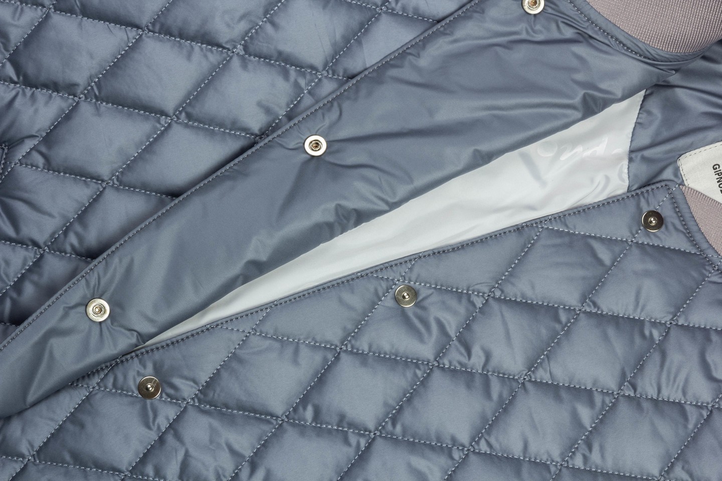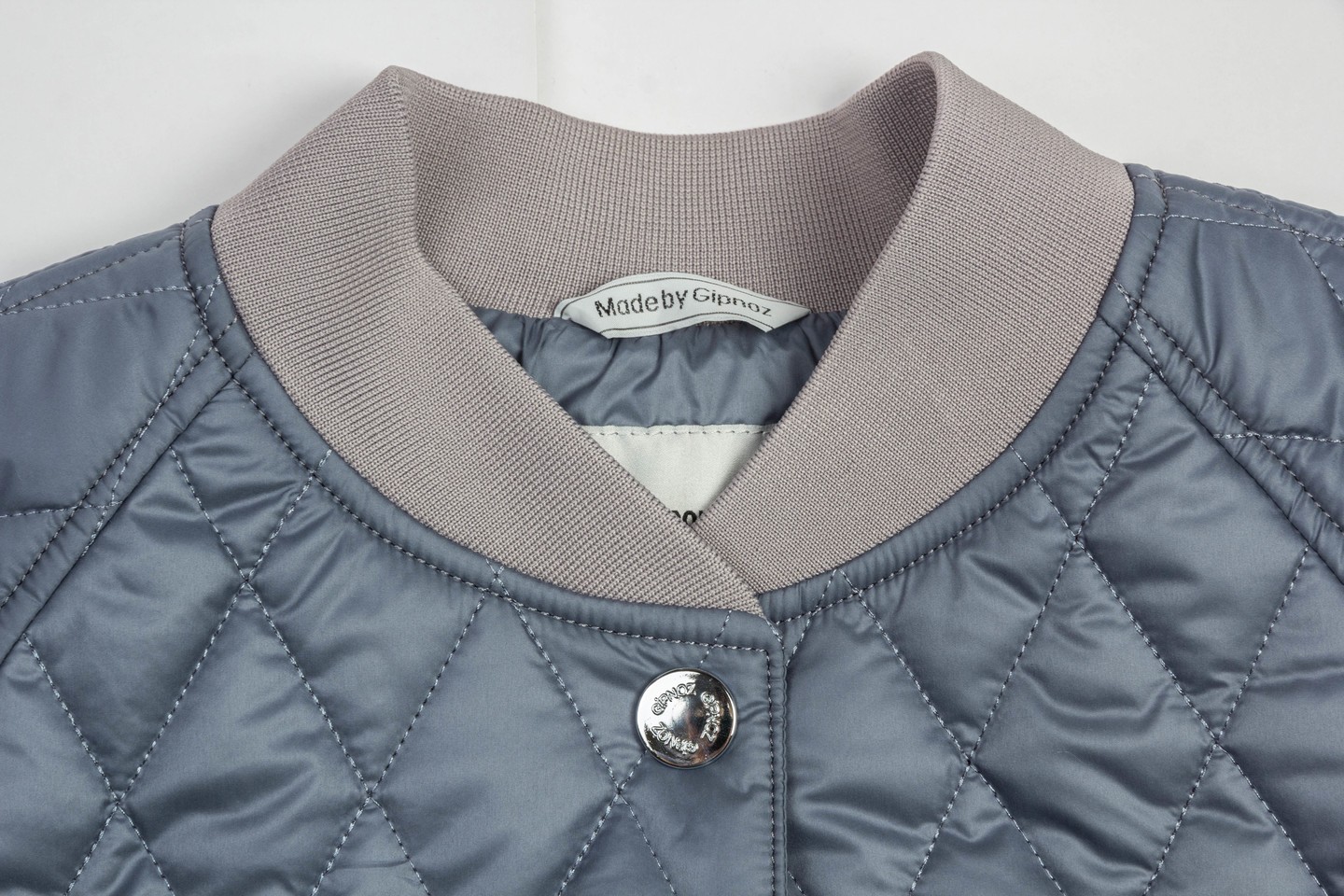 Для почитательниц удобства и практичности в одежде предлагаем модную куртку - бомбер из стеганой ткани. Модель удлиненная, подойдет на любую фигуру, на горловине и рукавах мягкий манжет. Особенности модели: очень спокойные – «припыленные» цвета с контрастной отделкой, застежка на кнопки, карман застегивается на потайную кнопку, фигурная линия низа. Утеплитель – термофин, плотность 100. графит