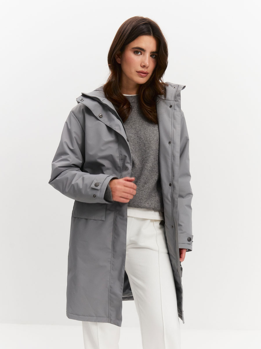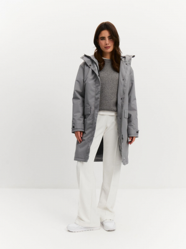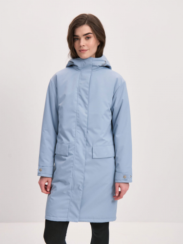 Демисезонная удлиненная куртка для женщин из мембранной ткани с капюшоном. Застежка на молнию, закрытая планкой на кнопках. Подкладка с накладным карманом. Втачной капюшон. 2 прорезных кармана с клапаном на магнитных кнопках. Рассчитана на температуру от -5 до +10. Утеплитель: 100% полиэстер Подкладка: 100% полиэстер