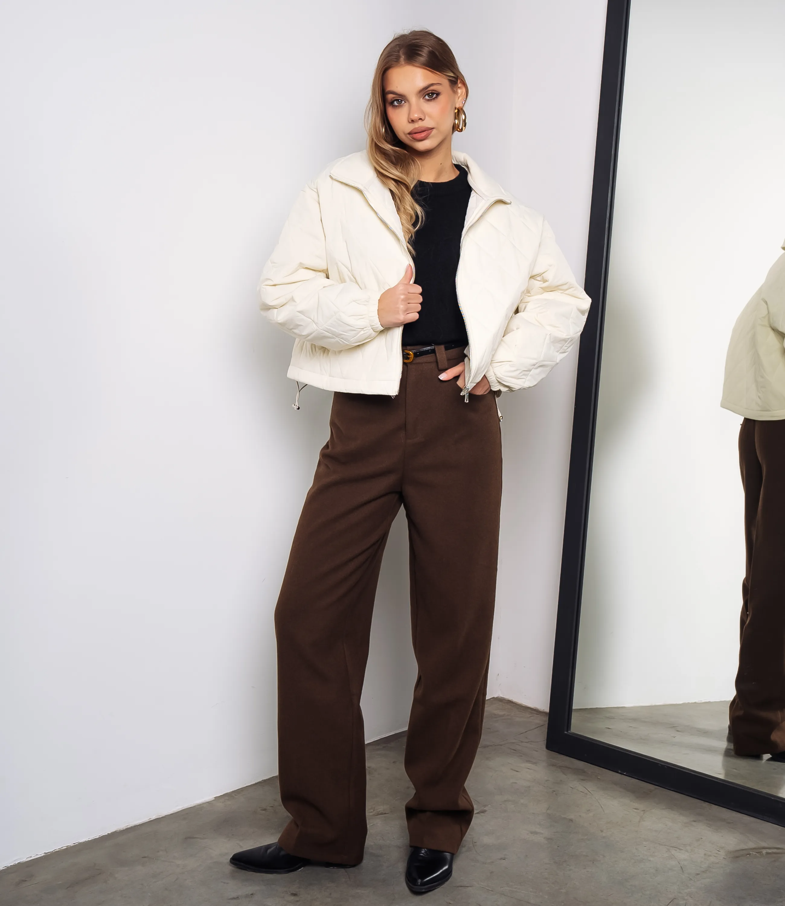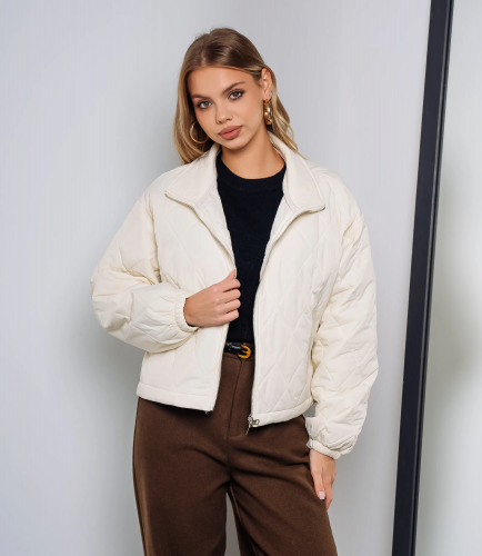 Куртка — это часть гардероба, которая подчёркивает привлекательность и индивидуальность каждой покупательницы. Стёганая с лёгкой объёмной посадкой и прямым силуэтом; ткань внешней стороны гладкая, с рельефными ромбовидными простёжками, создающими мягкую структурированную поверхность, внутри — утеплённая прослойка, придающая объём и теплоизоляцию. Воротник стойка средней высоты с плавным закруглением. Для пошива использованы 100% полиэстера, сочетание натурального комфорта и синтетической надёжности. Рекомендуем позиционировать куртку как ключевой элемент капсулы smart casual, сочетая её с брюками высокой посадки, юбками‑карандаш или худи. Визуально подчёркивайте контраст текстур рукавов в витрине и онлайн‑карточке, предлагайте несколько базовых оттенков и одну‑две акцентные версии для увеличения оборачиваемости. Рост модели 168 см., 89-63-90.