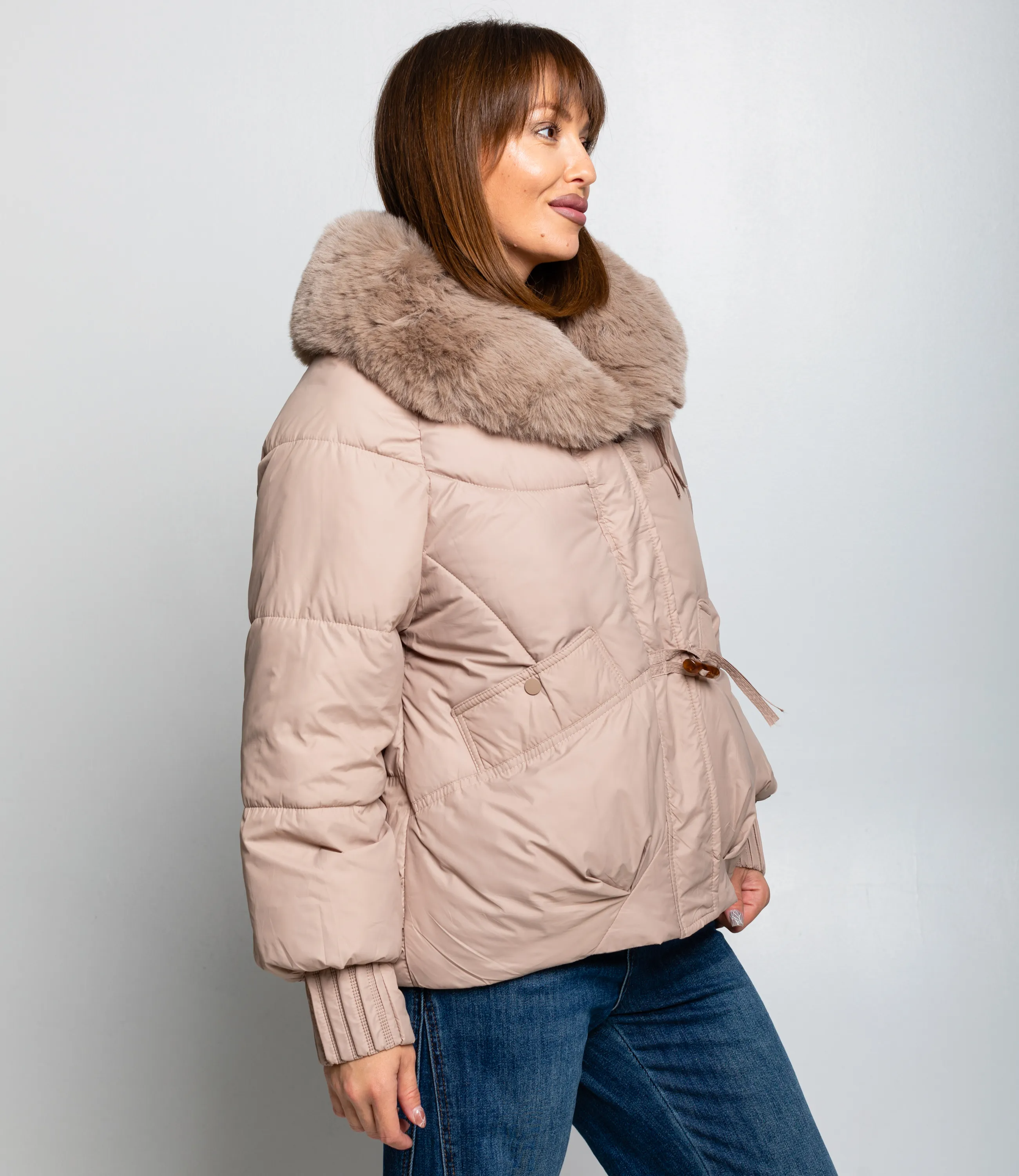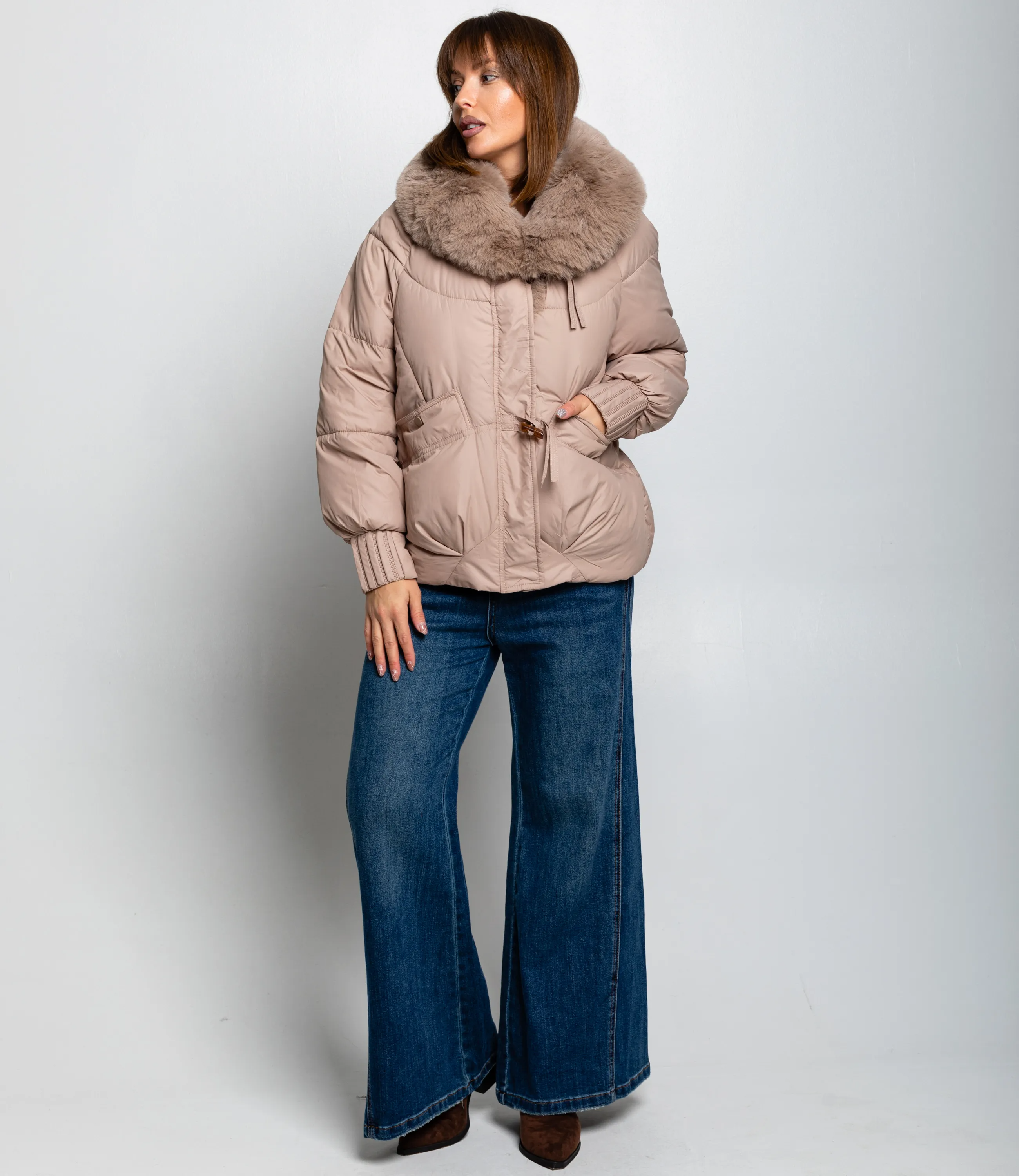 Куртка — это часть гардероба, которая подчёркивает привлекательность и индивидуальность каждой покупательницы.Куртка выполнена из плотной стёганой ткани с мягкой матовой поверхностью, имеет укороченный просторный силуэт чуть ниже линии талии, объёмный съёмный воротник из густого меха с закруглённой формой, плотно облегающий шею и переходящий в высокий капюшоноподобный задник; центральная застёжка скрытая под накладной планкой с молнией и дополнительной декоративной деревянной либо пластиковой пуговицей‑фиксатором на талии, которая проходит через петлю и подчёркивает линию талии; рукава длинные, слегка расширенные, с внутренними трикотажными манжетами для защиты от ветра и дополнительной теплоизоляции. Для пошива использованы 100% полиэстера, сочетание натурального комфорта и синтетической надёжности. Рекомендуем позиционировать куртку как ключевой элемент капсулы smart casual, сочетая её с брюками высокой посадки, юбками‑карандаш или худи. Визуально подчёркивайте контраст текстур рукавов в витрине и онлайн‑карточке, предлагайте несколько базовых оттенков и одну‑две акцентные версии для увеличения оборачиваемости. Вы можете заказать онлайн презентацию на интересующие Вас модели. Наши менеджеры свяжутся с Вами и проведут индивидуальную видеотрансляцию, помогут составить заказ и ответят на Ваши вопросы.