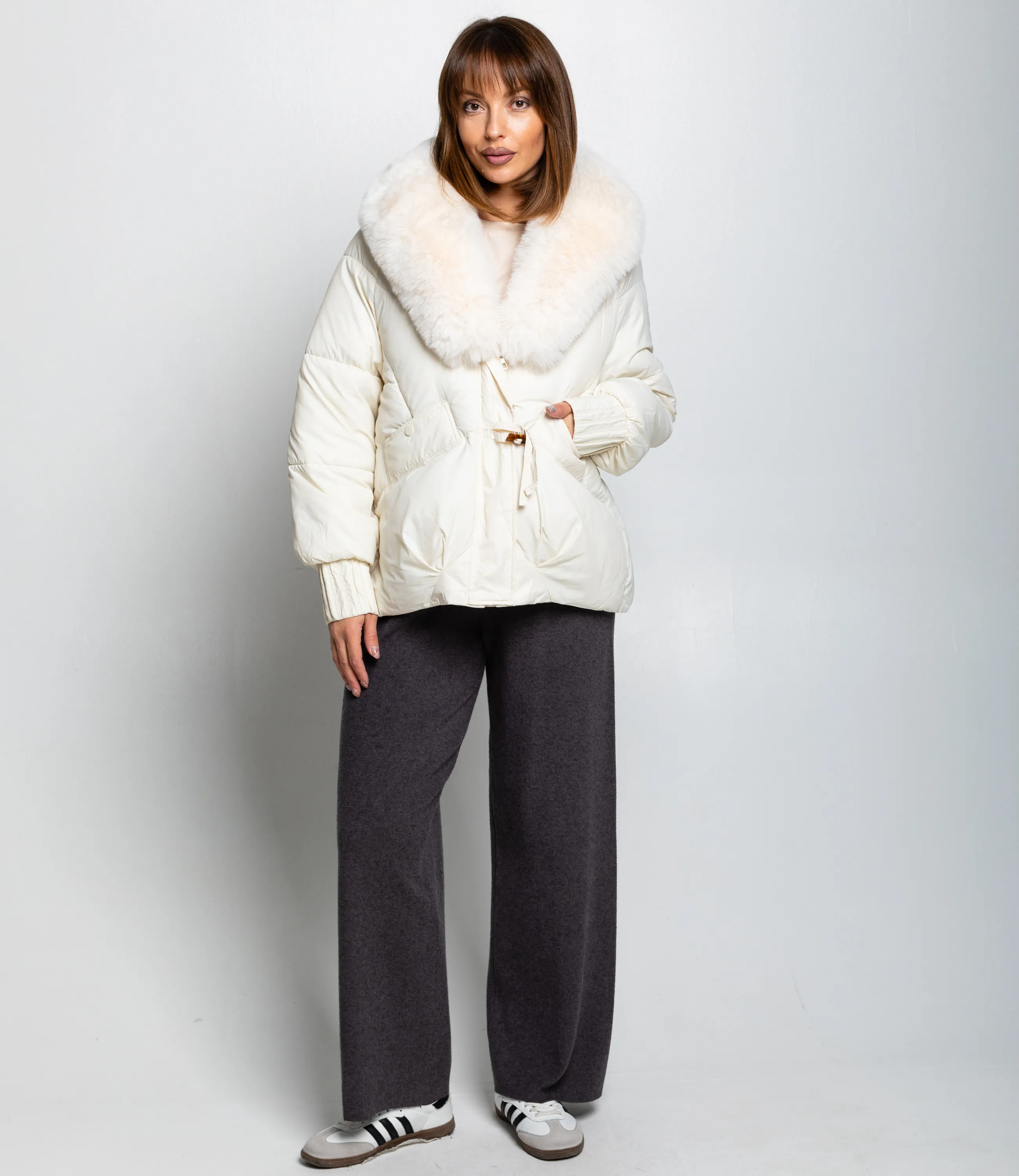 Куртка — это часть гардероба, которая подчёркивает привлекательность и индивидуальность каждой покупательницы.Куртка выполнена из плотной стёганой ткани с мягкой матовой поверхностью, имеет укороченный просторный силуэт чуть ниже линии талии, объёмный съёмный воротник из густого меха с закруглённой формой, плотно облегающий шею и переходящий в высокий капюшоноподобный задник; центральная застёжка скрытая под накладной планкой с молнией и дополнительной декоративной деревянной либо пластиковой пуговицей‑фиксатором на талии, которая проходит через петлю и подчёркивает линию талии; рукава длинные, слегка расширенные, с внутренними трикотажными манжетами для защиты от ветра и дополнительной теплоизоляции. Для пошива использованы 100% полиэстера, сочетание натурального комфорта и синтетической надёжности. Рекомендуем позиционировать куртку как ключевой элемент капсулы smart casual, сочетая её с брюками высокой посадки, юбками‑карандаш или худи. Визуально подчёркивайте контраст текстур рукавов в витрине и онлайн‑карточке, предлагайте несколько базовых оттенков и одну‑две акцентные версии для увеличения оборачиваемости. Вы можете заказать онлайн презентацию на интересующие Вас модели. Наши менеджеры свяжутся с Вами и проведут индивидуальную видеотрансляцию, помогут составить заказ и ответят на Ваши вопросы.