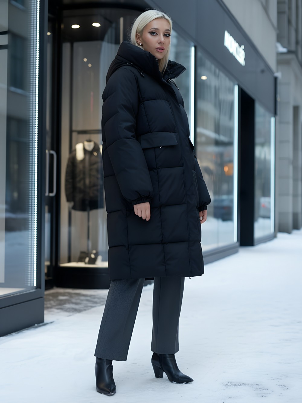 — Двойная молния: обеспечивает легкость застегивания и возможность регулировки объема, что делает пальто удобным в носке.