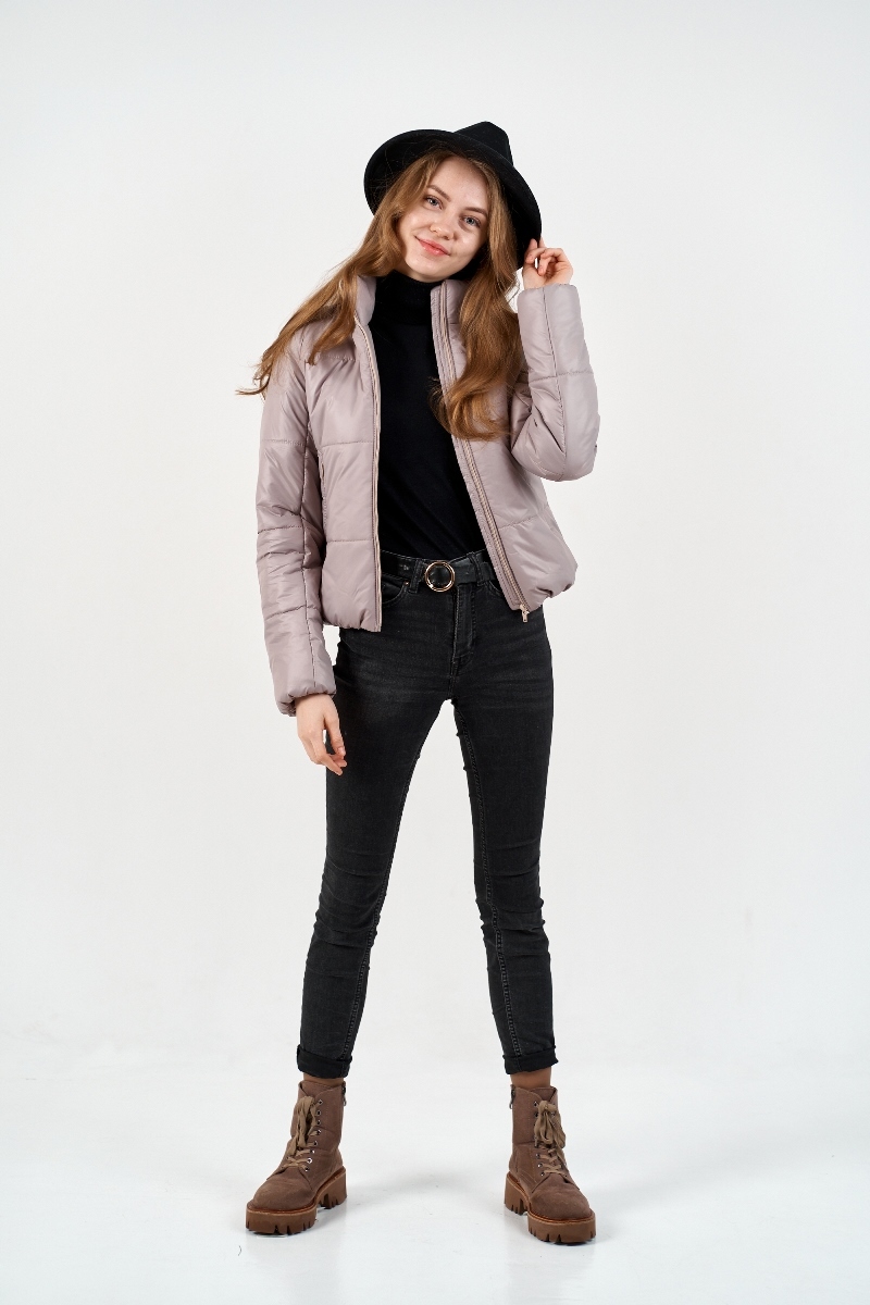 Женская демисезонная куртка  с воротником-стойкой, застежка-молния. Модель выполена из мягкой, приятной на ощупь ткани с легким блеском.   Размеры: 40-54 Состав: 100 % полиэстер Материал подкладки: 100 % полиэстер Утеплитель: 100 % полиэстер (150 г/кв.м синтепон) Размер товара на модели: 42 Цвет на модели: какао Рост модели: 172 см. Длина по спинке: 60 Длина рукава: 65 Сезон: демисезон Температурный режим: до -5 градусов Застежка: молния Стиль: повседневный Карманы: 2 Артикул: 213