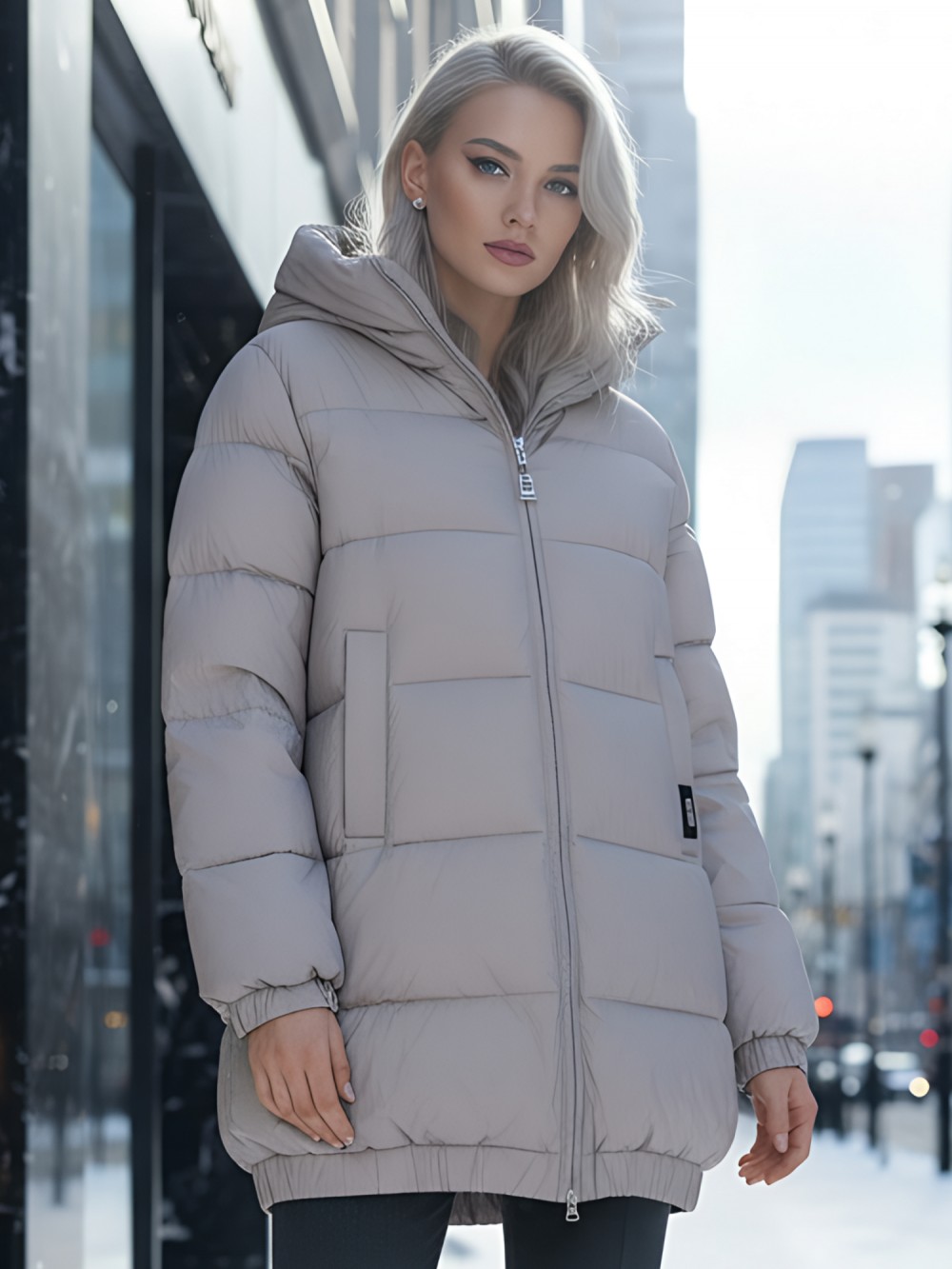 Дополнительные преимущества включают внутренние карманы для удобства, а также дышащий и гипоаллергенный материал, который не вызывает дискомфорта. Съемный воротник и фиксатор на капюшоне добавляют модели элегантности и функциональности.
