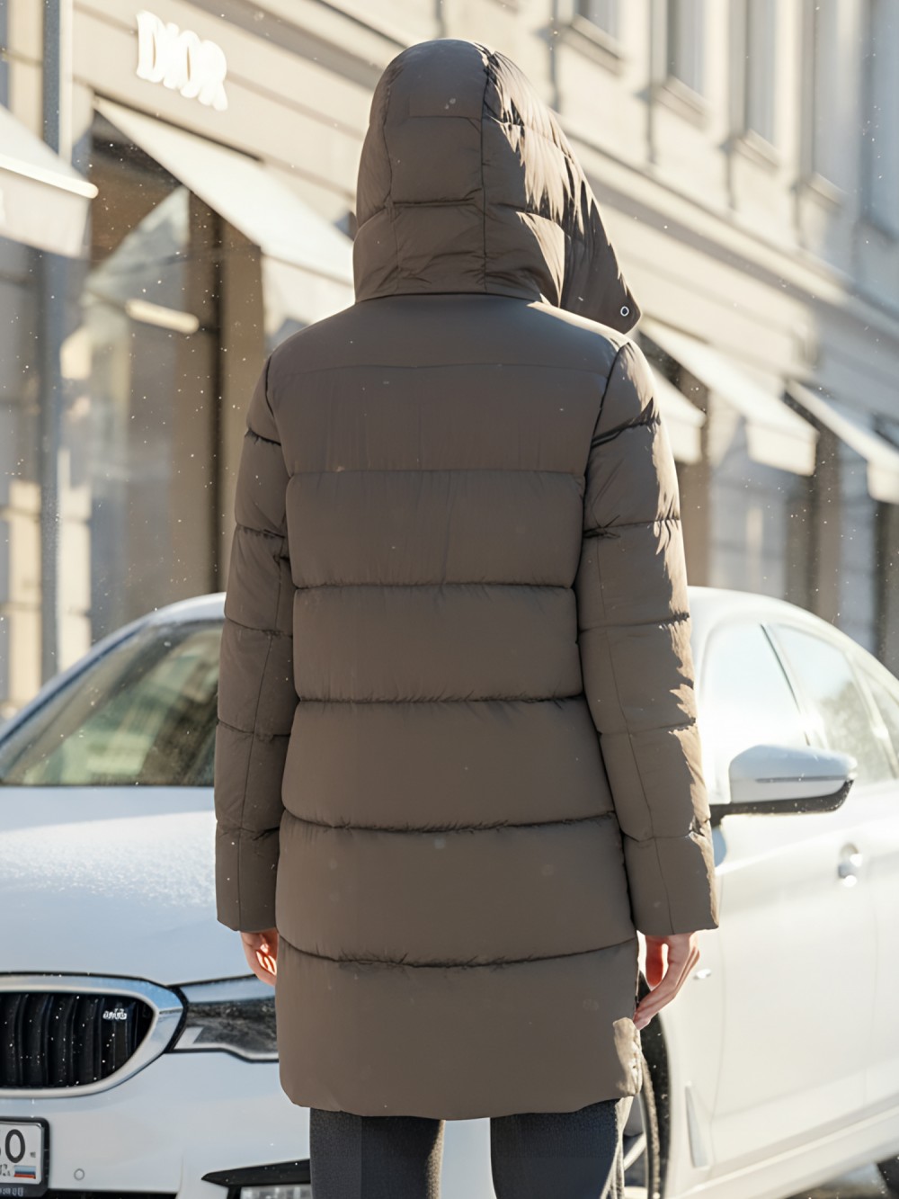 Эта модель выполнена в элегантном, офисном/школьном и повседневном стилях, идеально подходит для различных ситуаций. Декоративные элементы, такие как капюшон и молния, придают куртке современный вид. Доступна в пяти цветах: черный, темно-серый, бежевый, коричневый и светло-коричневый.