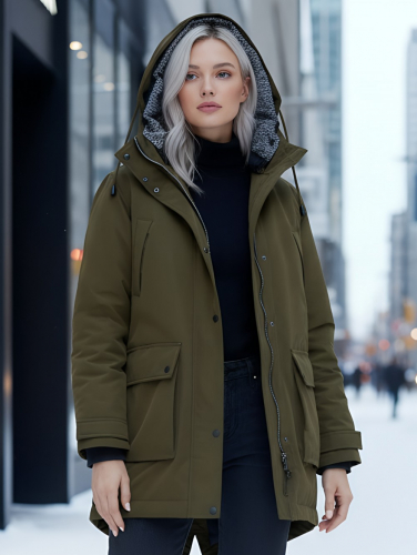 Куртка зимняя женская модная из овчины. Эта зимняя женская куртка отличается своим стильным дизайном и комфортной посадкой. Прямой крой подчеркнет вашу фигуру, а съемный глубокий ветрозащитный капюшон с кнопками защитит вас от холодного ветра. Куртка имеет множество карманов, включая боковые карманы на молнии и внутренний прорезной кармашек для хранения ваших вещей. Внешняя ткань куртки имеет водоотталкивающую пропитку, что защитит вас от снега и ветра. Внутри куртки используется гипоаллергенный тинсулейт, который делает ее теплой и легкой. Манжеты куртки рукавов из кожи, на кнопке. Верхняя часть куртки изготовлена из натуральной овчины. Кожаный воротник стойка утеплен мехом. Куртка на двойном замке с ветрозащитной планкой на кнопках. В талии имеется фиксирующая утяжка. Эта куртка идеально подойдет для активного отдыха, вечерних прогулок и повседневной носки в холодную зиму. Она не только защитит вас от переохлаждения, но и добавит стиль и элегантность вашему образу. Куртка выполнена из высококачественных материалов и прослужит вам долгие годы. Так что несомненно выбирайте эту куртку, чтобы быть здоровой и комфортной в холодную зиму.