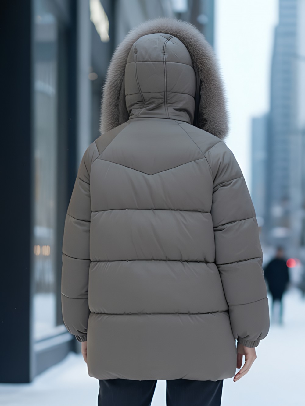 Четыре трендовых оттенка 2025 года – глубокий черный, благородный коричневый, элегантный бежевый и загадочный темно-зеленый – идеально гармонируют с роскошным мехом песца. Удлиненный силуэт до колена в сочетании с прямым кроем создает безупречные пропорции, делая фигуру более стройной.