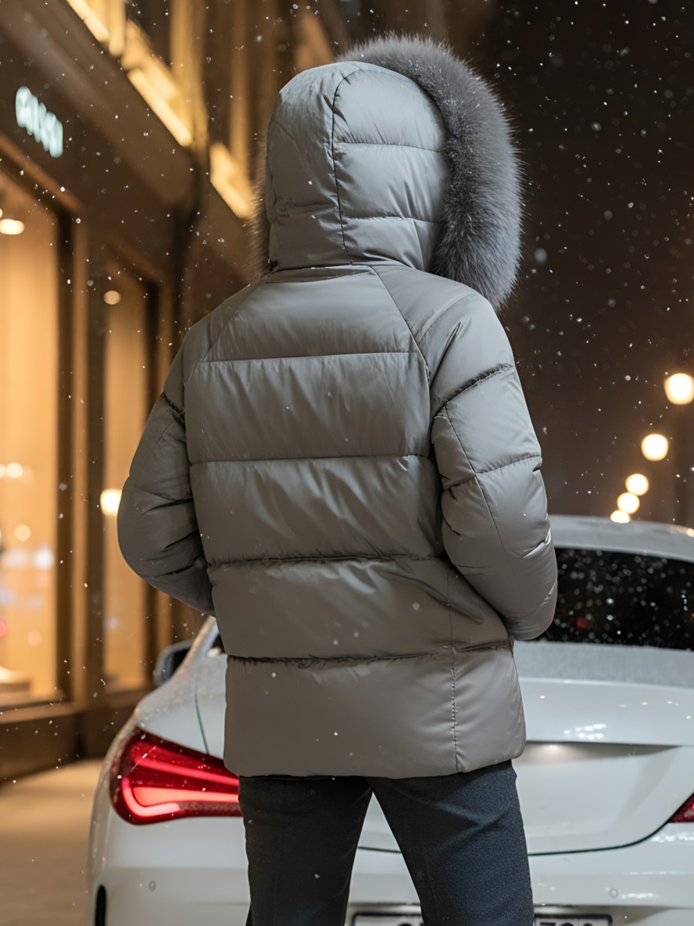 Четыре актуальных оттенка коллекции осень-зима 2025 – классический черный, роскошный коричневый, изысканный светло-коричневый и трендовый горчичный – великолепно гармонируют с натуральным мехом песца. Длина до бедра и свободный крой создают идеальные пропорции для размеров 44-52.