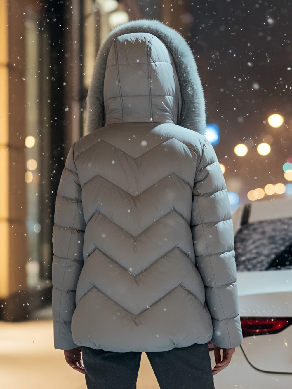 Утеплитель плотностью 200 г/м² обеспечивает комфорт при температурах от +5° до -20°C. Роскошный натуральный мех песца обрамляет лицо, создавая неповторимый образ городской леди. Безупречный крой подчеркивает силуэт, оставляя свободу движений.
