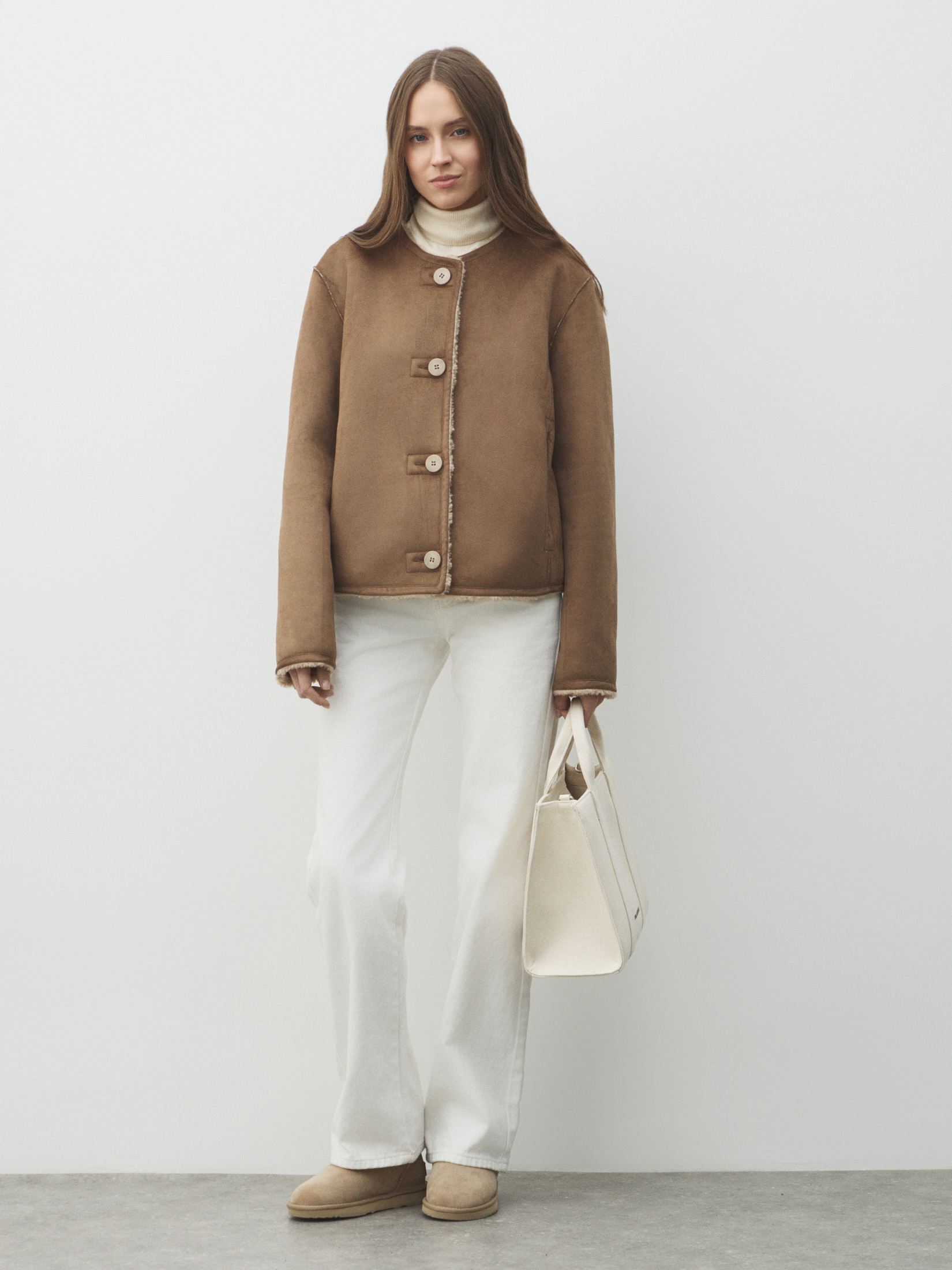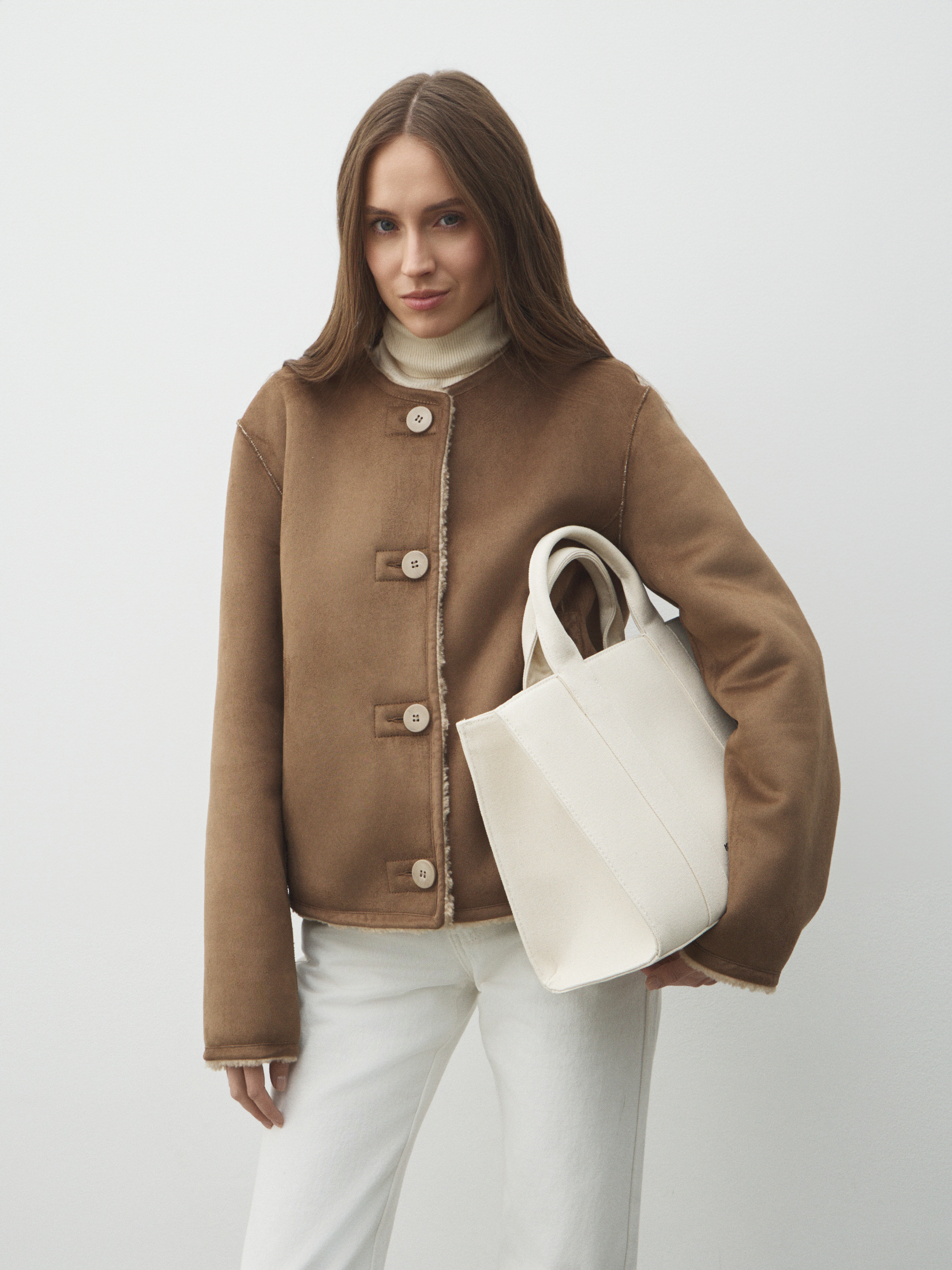 Двусторонняя дубленка MAISON DAVID 4973682, серовато-коричневый