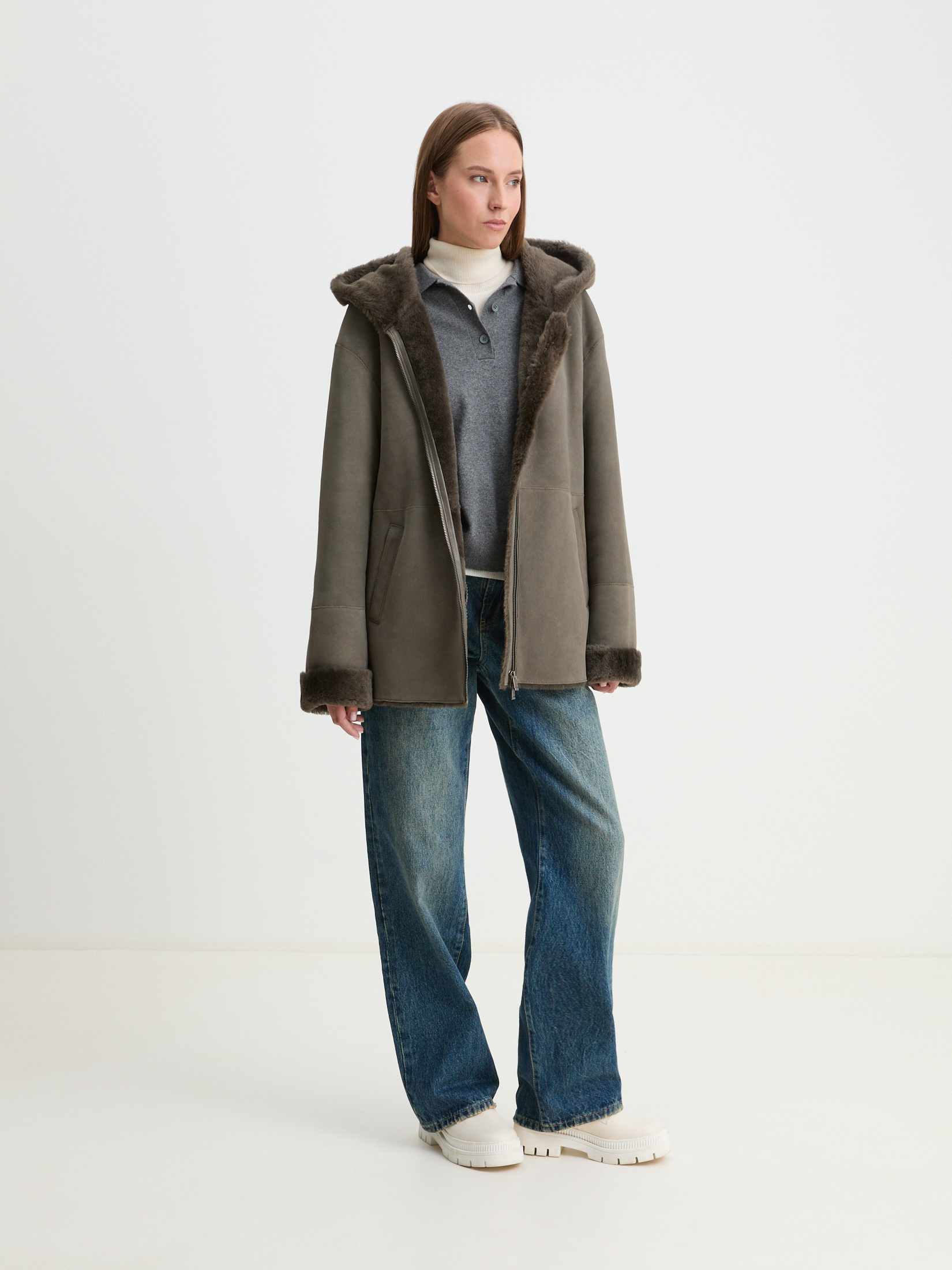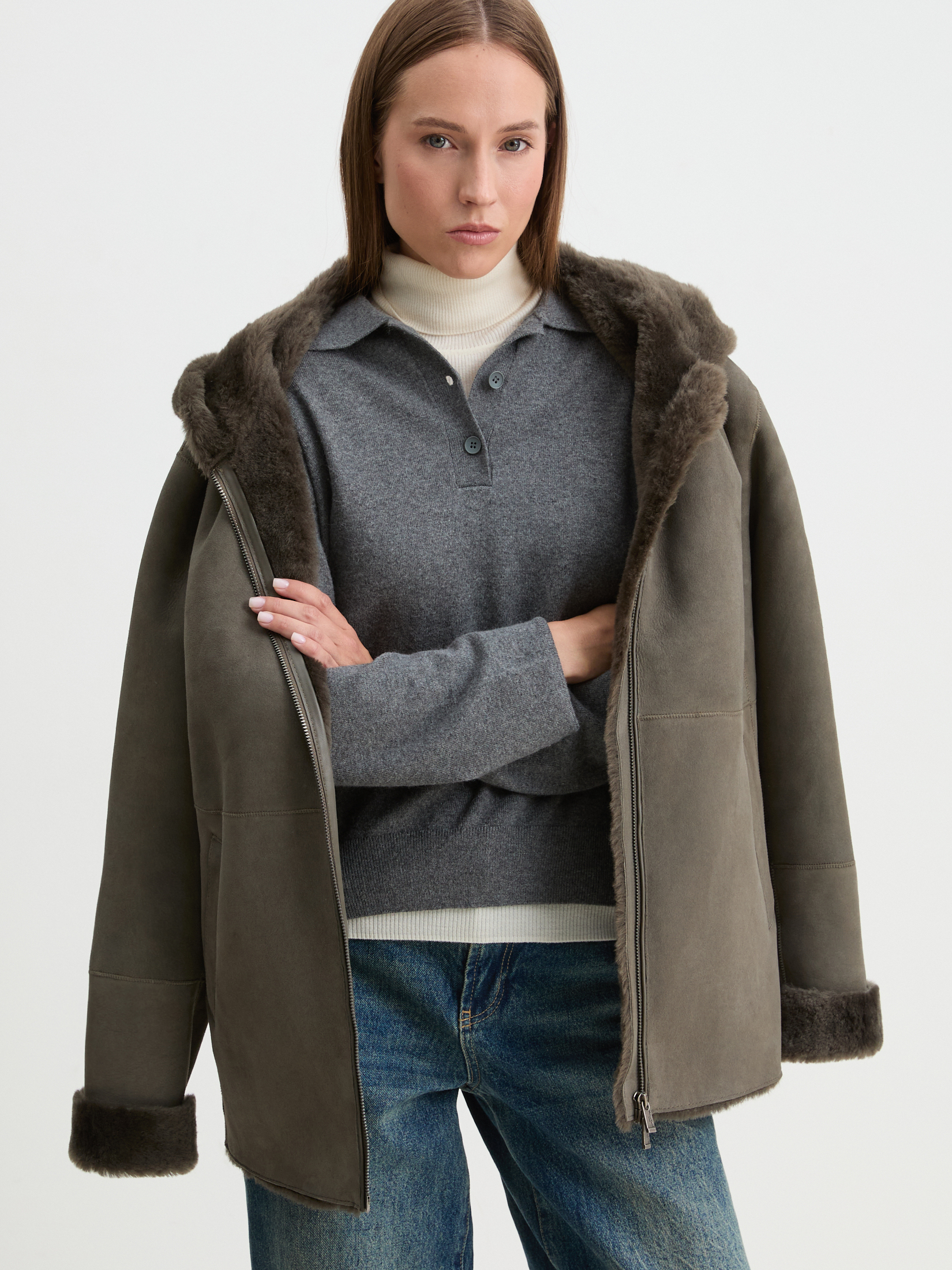 Женская дубленка MAISON DAVID 3800799, зелено-серый