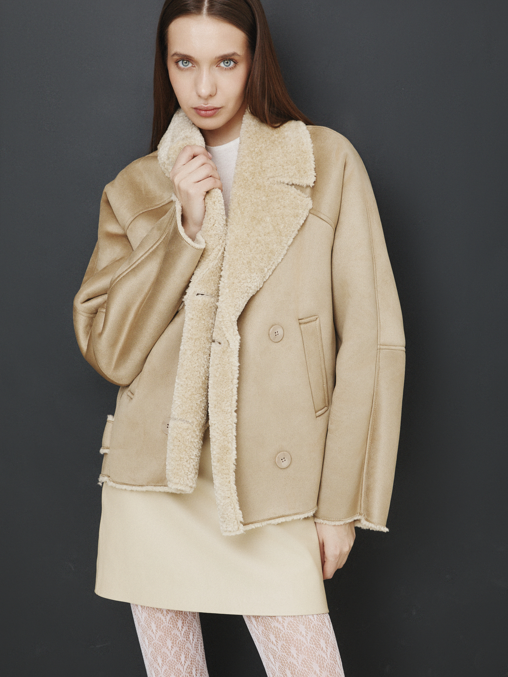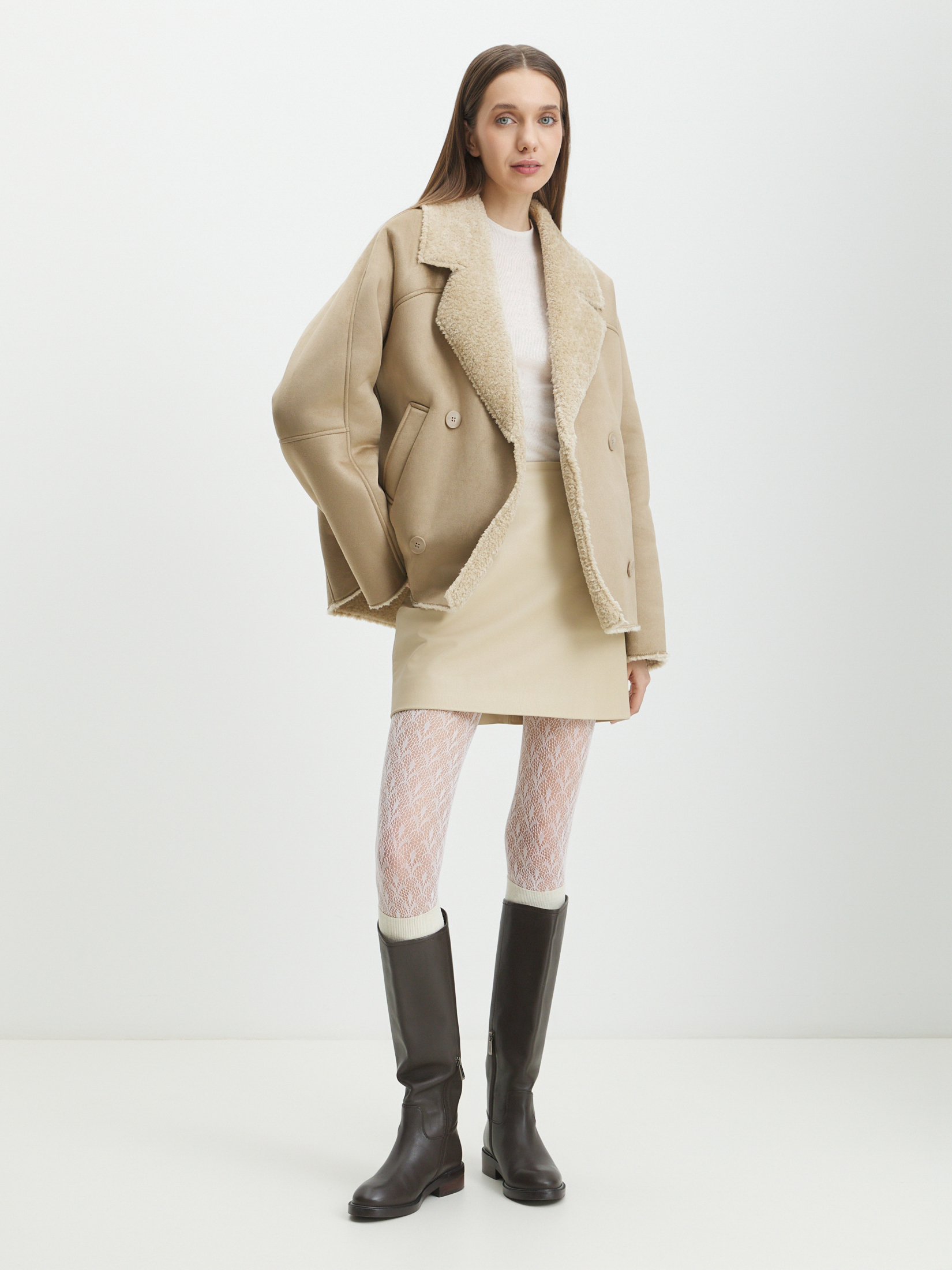 Женская дубленка MAISON DAVID 4535473, зеленовато-бежевый