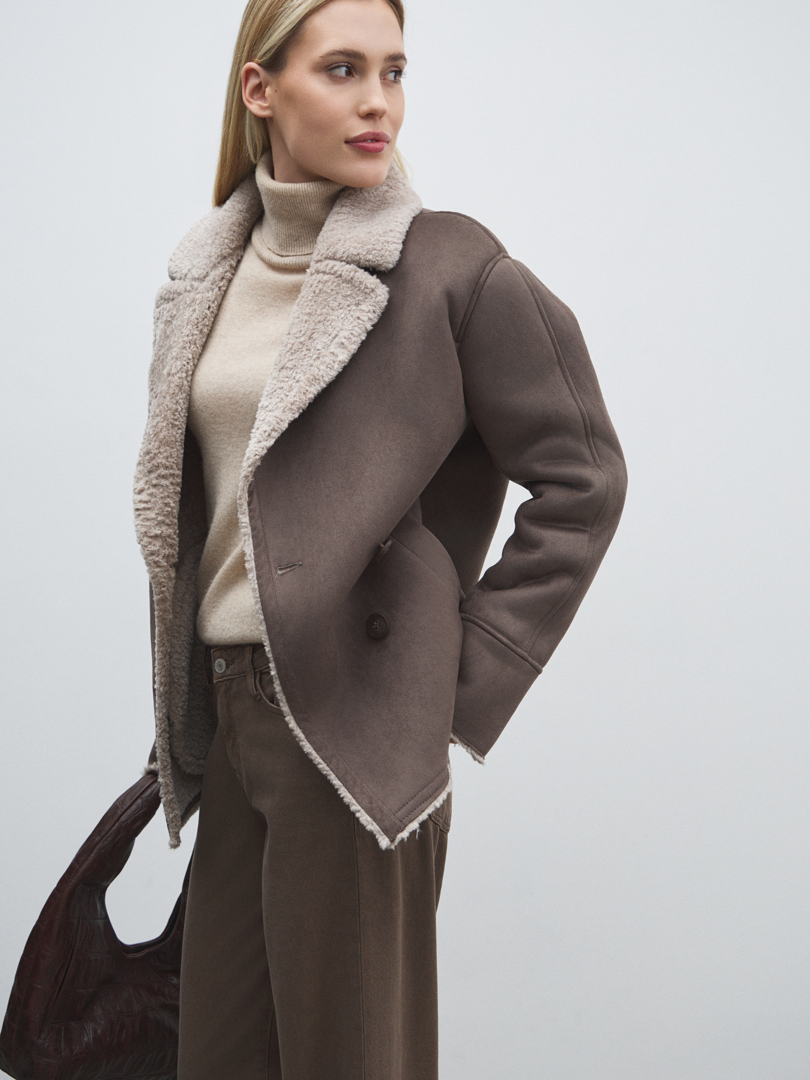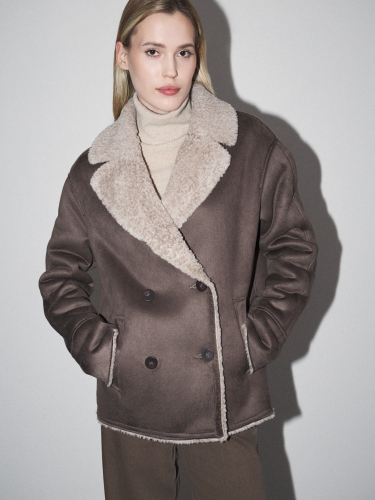 Женская дубленка MAISON DAVID 4846114, коричнево-серый