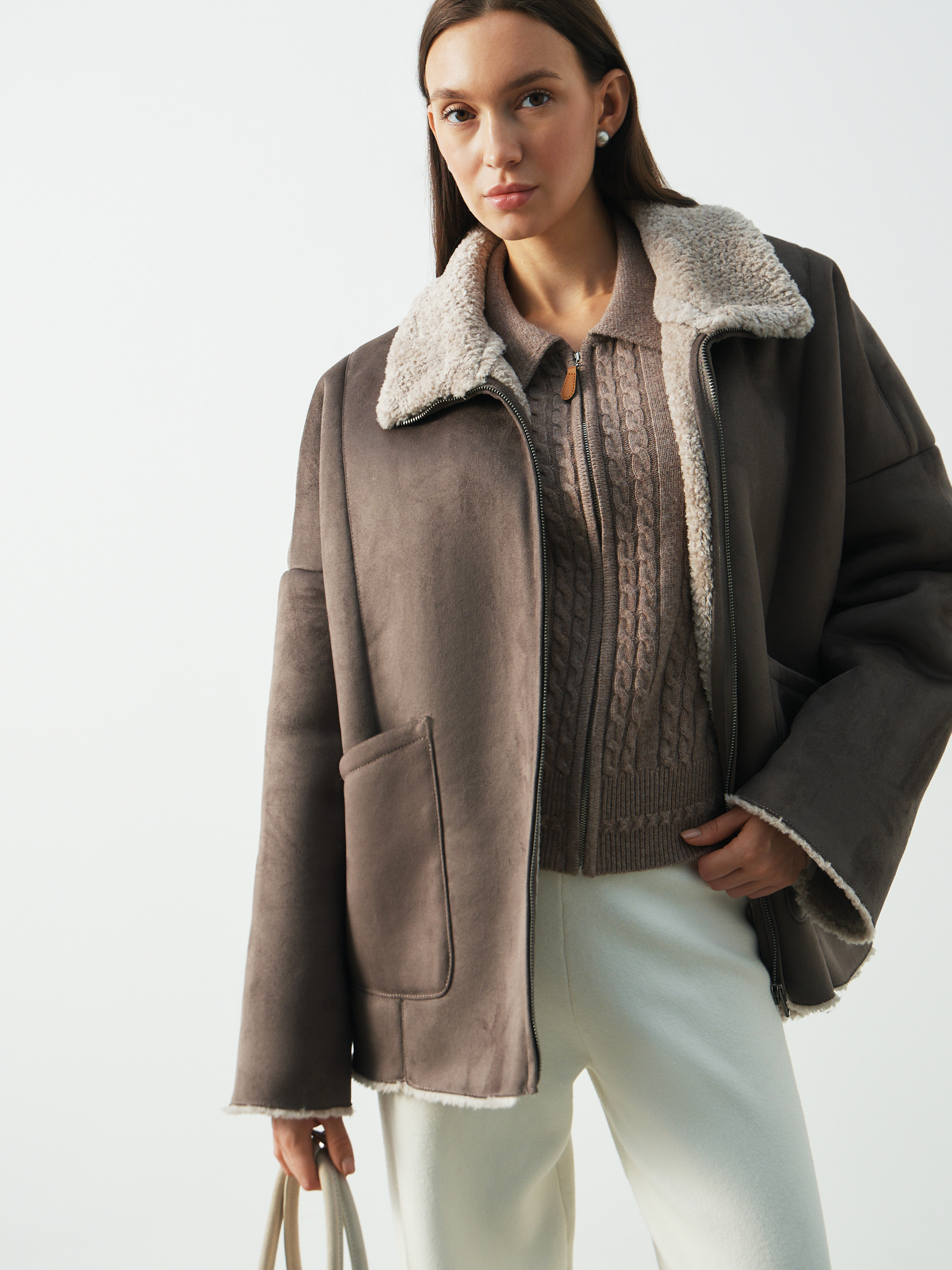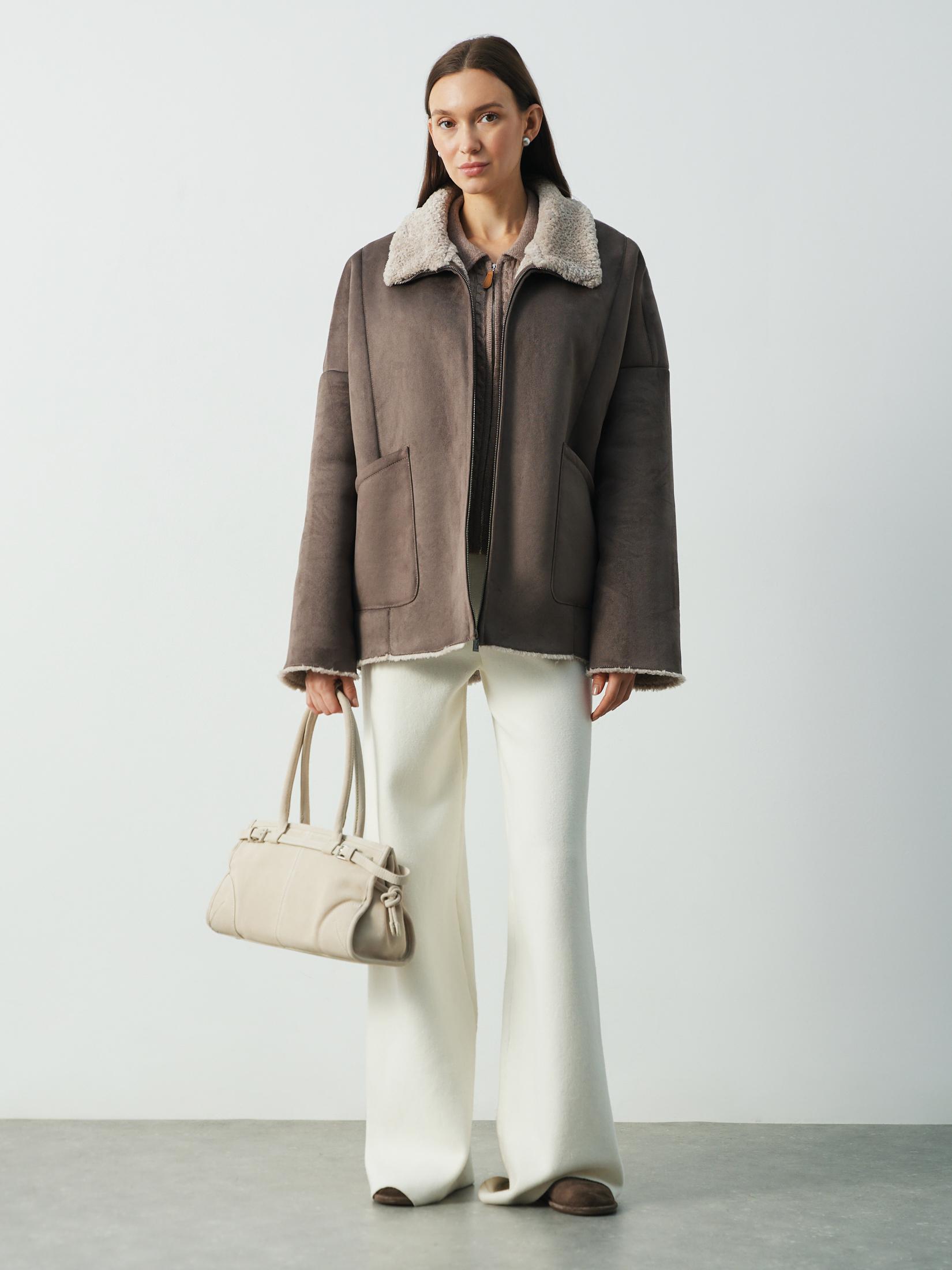 Женская дубленка MAISON DAVID 4858103, коричнево-серый